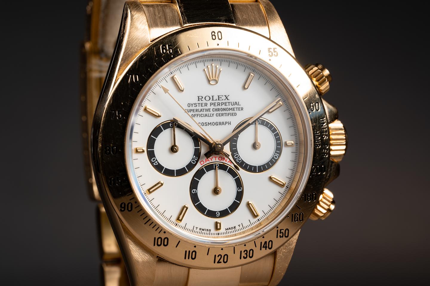 Dial: The white porcelain drop down cosmograph dial is excellent showing little if any wear for its age. The lume has aged to a clean creamy hue and the hands match perfectly.