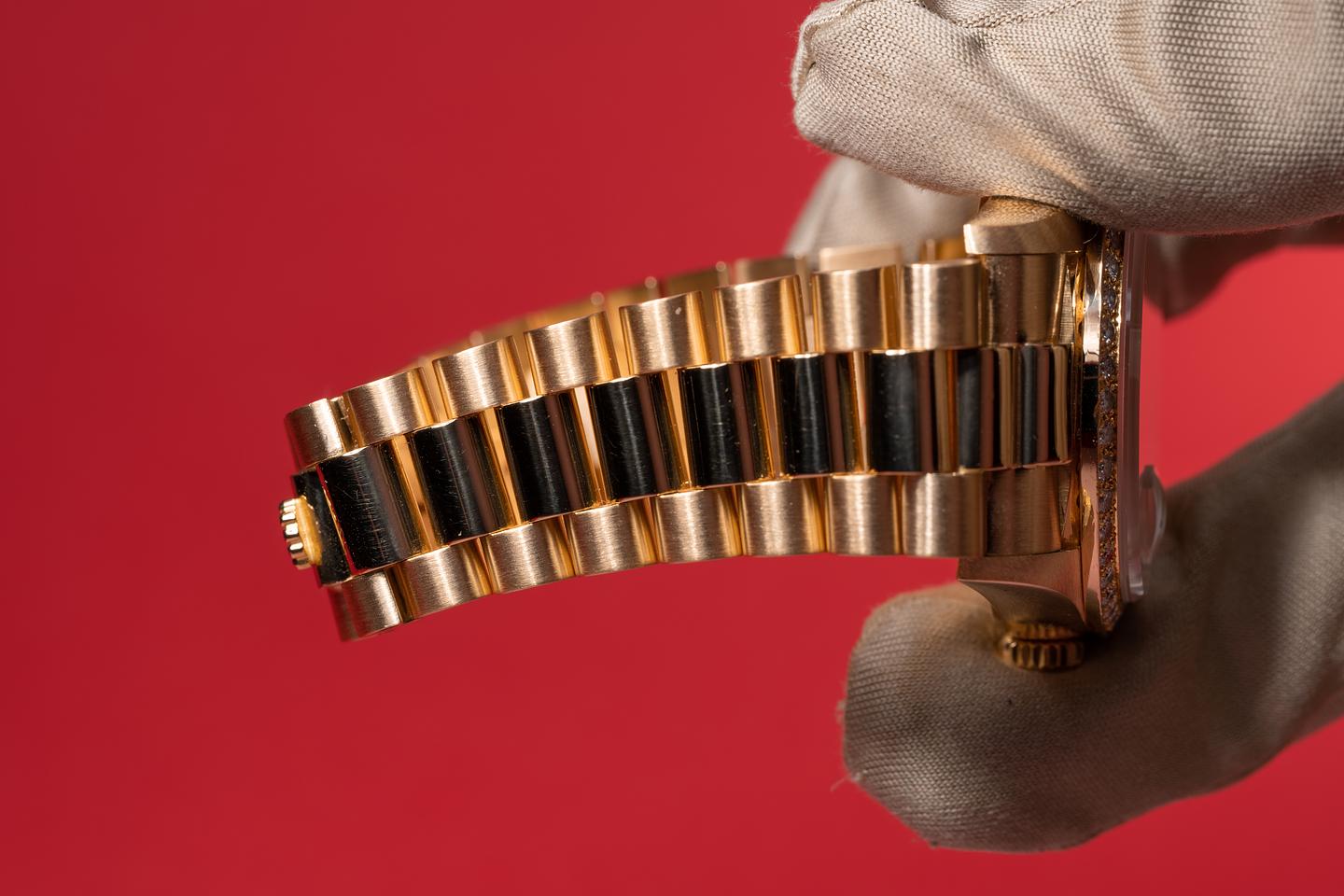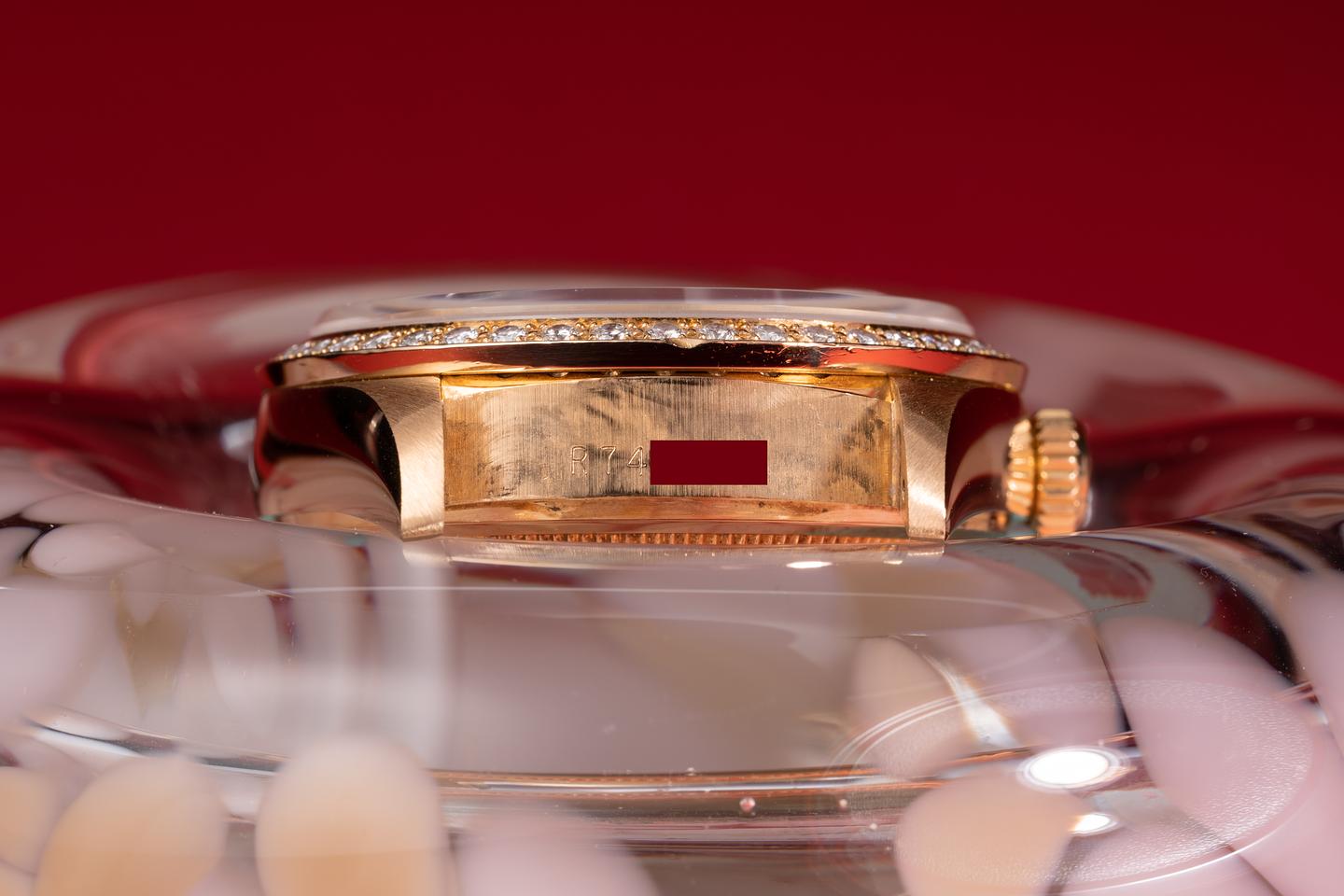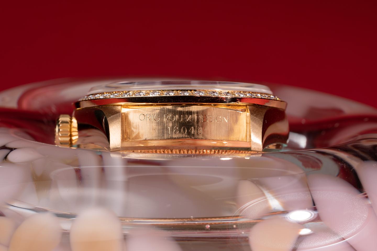 Case: The 18k yellow gold case is excellent showing only very light wear from use. The factory 18k yellow gold diamond inlaid bezel is also in excellent condition showing only very light wear from use.