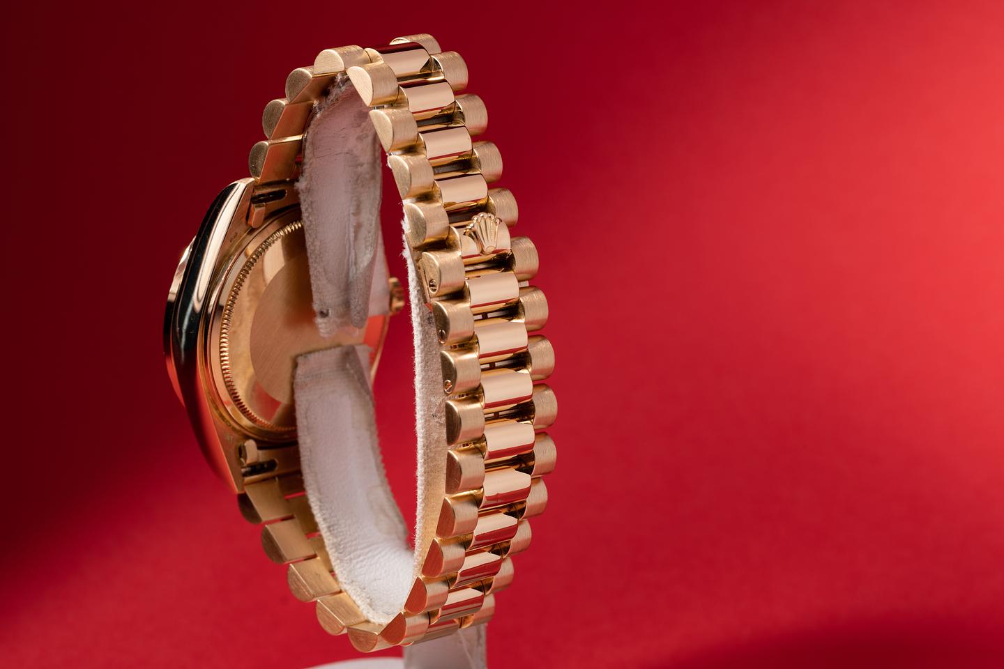 Bracelet: The 22 link 18K yellow gold President bracelet is excellent showing light stretch. The clasp is stamped with a 1986 date code.