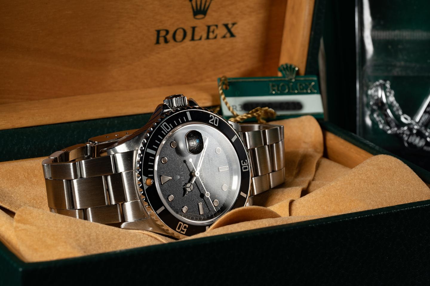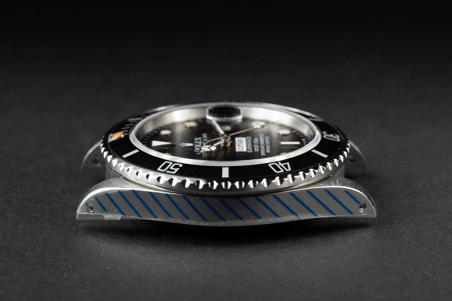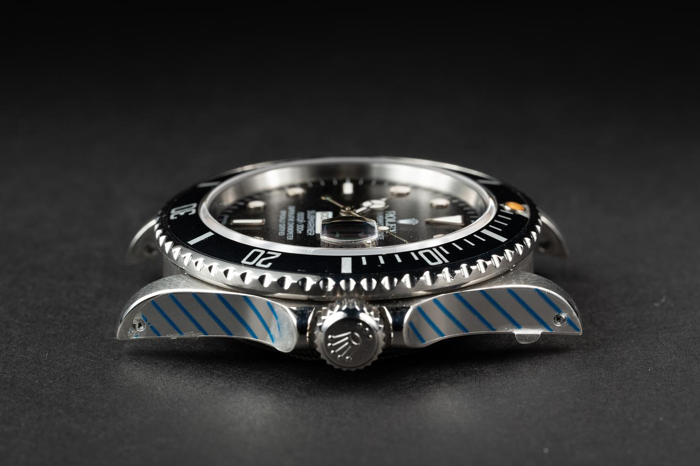 Case: The case has recently been polished at Rolex Geneva and the Rolex service stickers are still in place. The bezel insert is in excellent condition and has faded to a dark navy blue hue.
