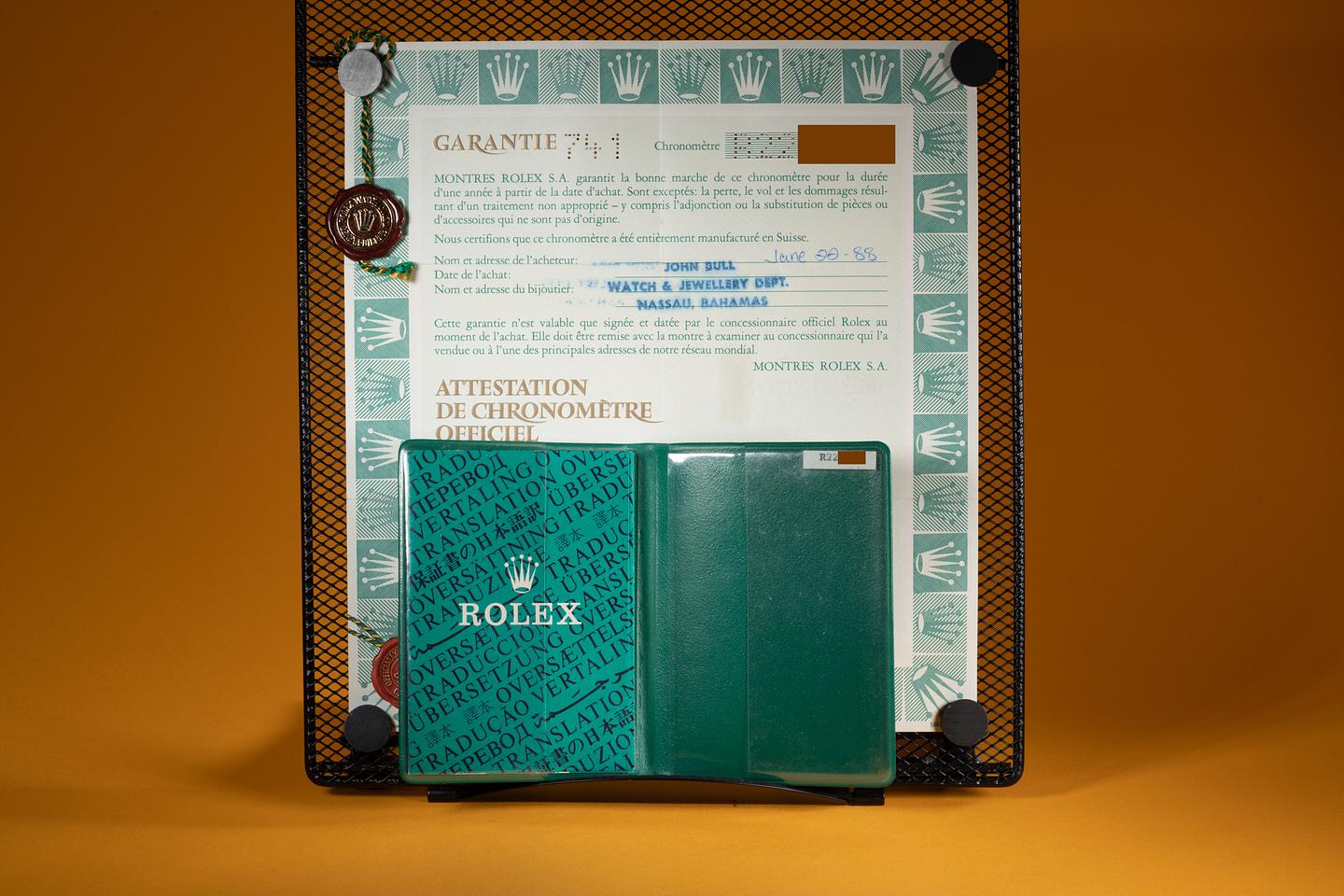 Bracelet: The 20 link Jubilee bracelet is excellent showing only light stretch for its age. The clasp is stamped with a matching 1988 date code.