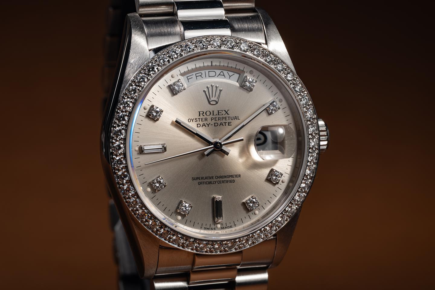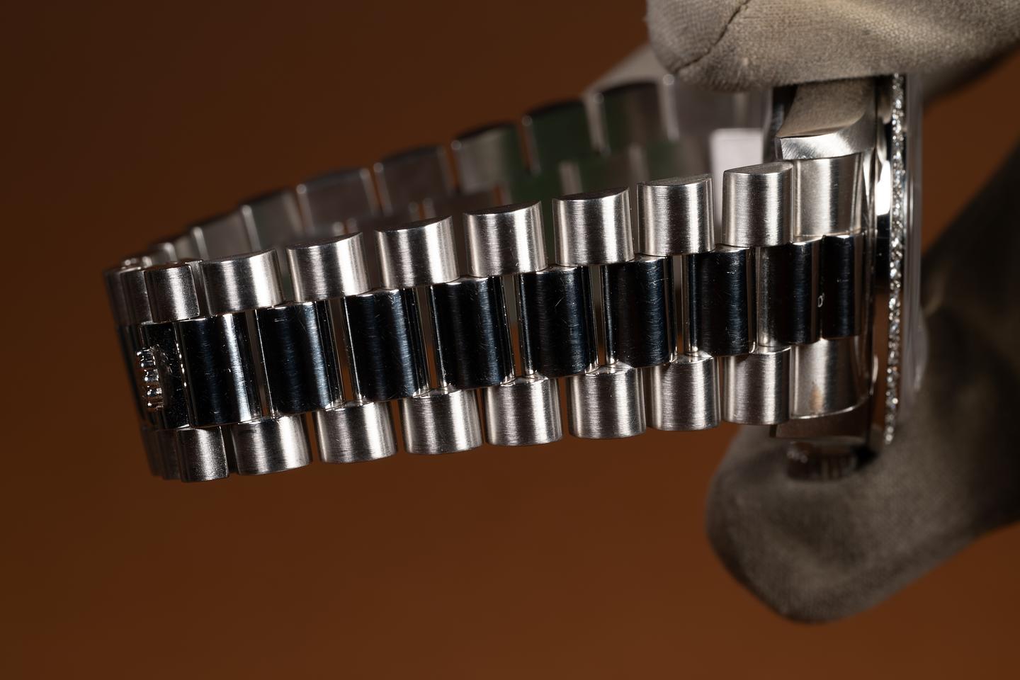 Bracelet: The 20-link platinum President bracelet is excellent, showing only very light stretch for its age.