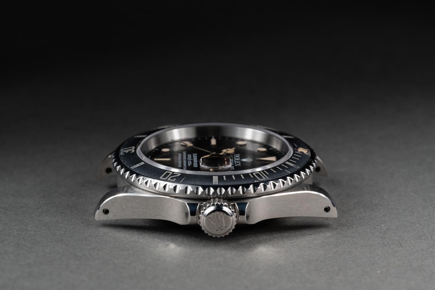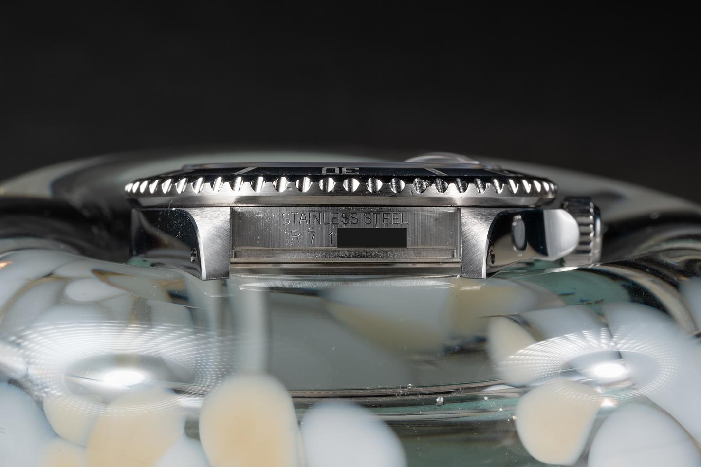 Case: The thick and even case is excellent showing sharp prominent bevels and only very light wear. The bezel insert is also in excellent condition and has aged to a blue silvery hue.