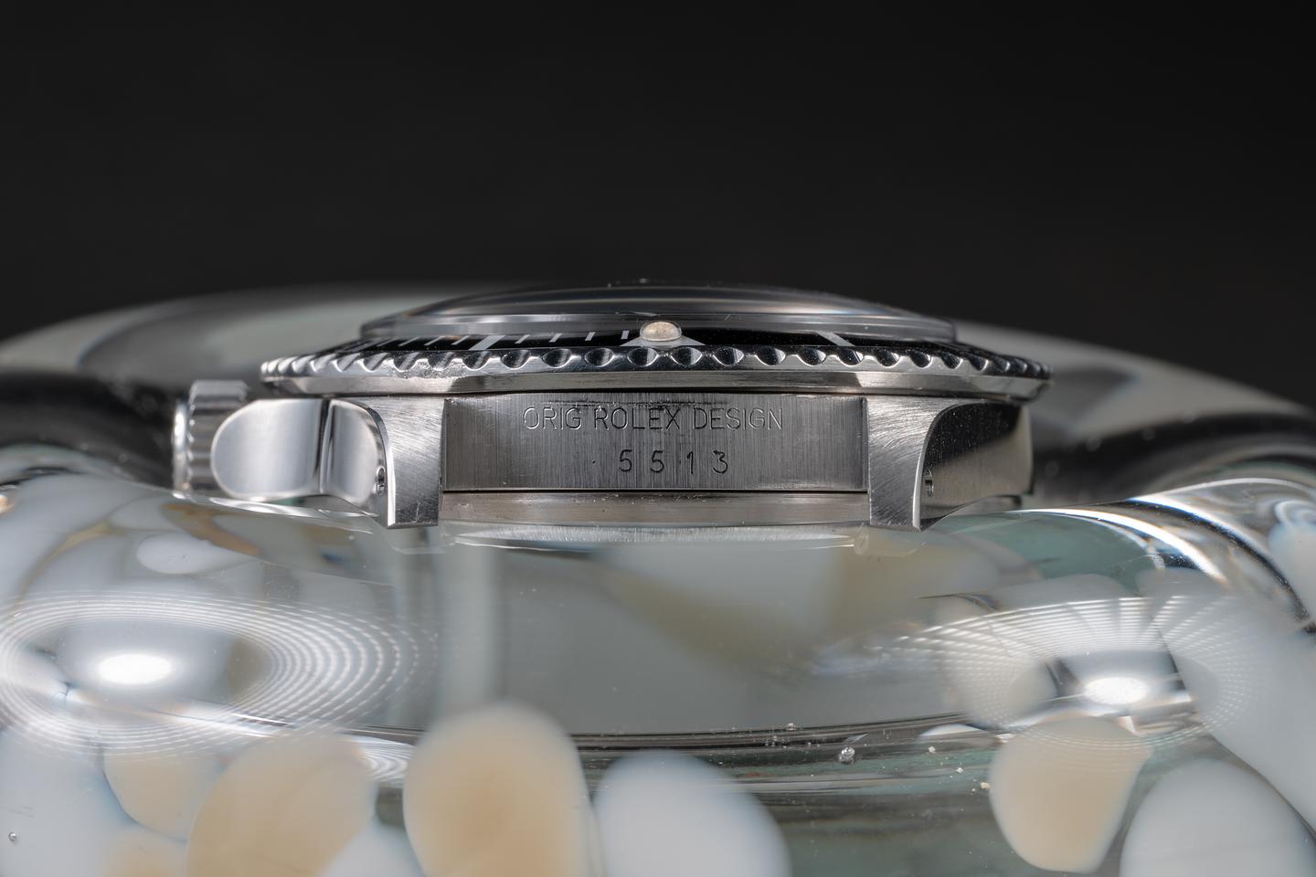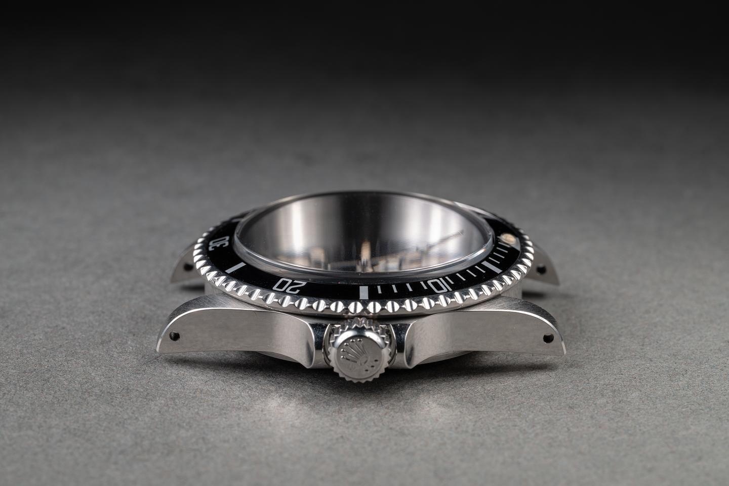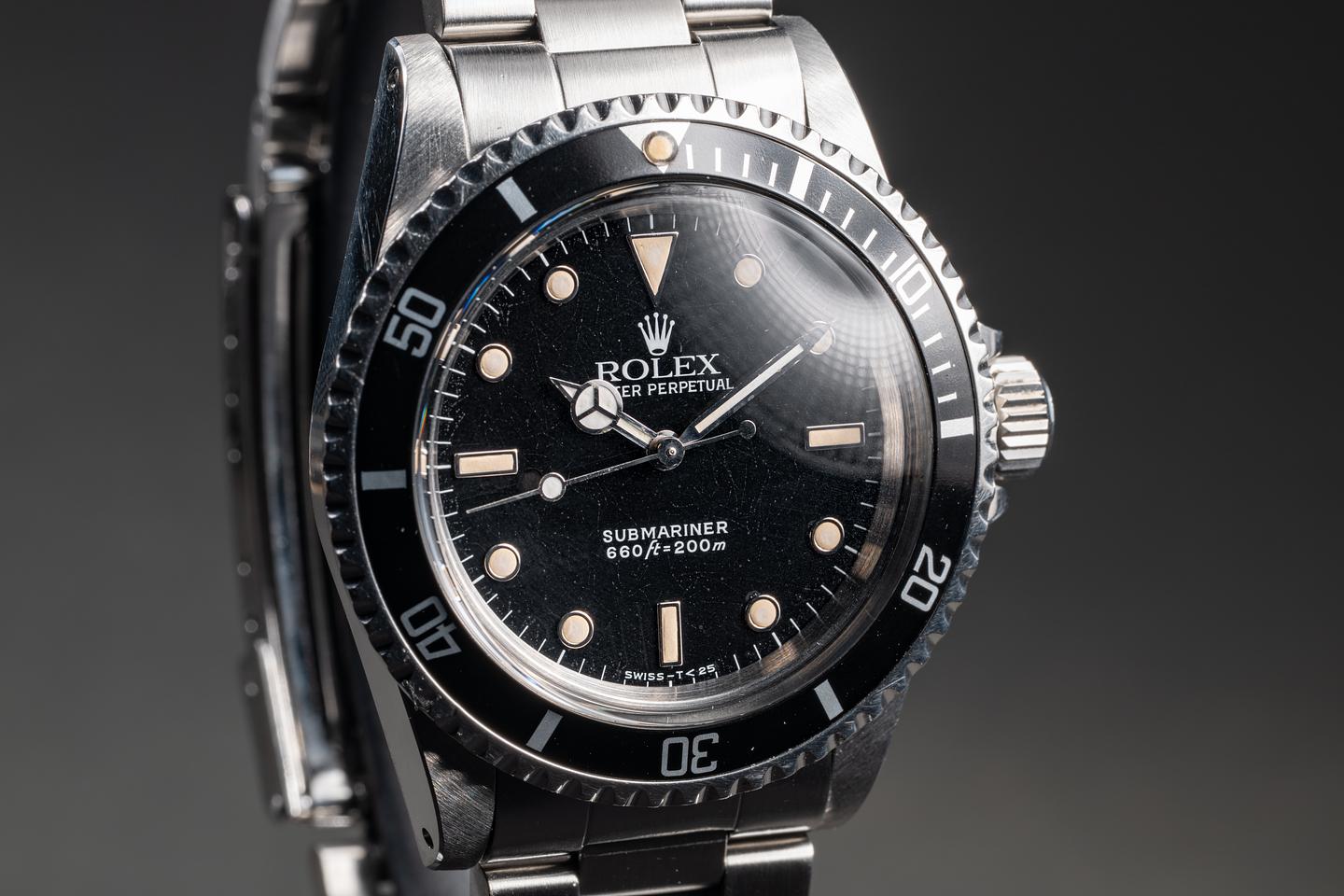 Case: The recently polished case is excellent, showing sharp, prominent bevels and only very light wear from use. The black bezel insert is also in excellent condition, showing only very light wear from use.