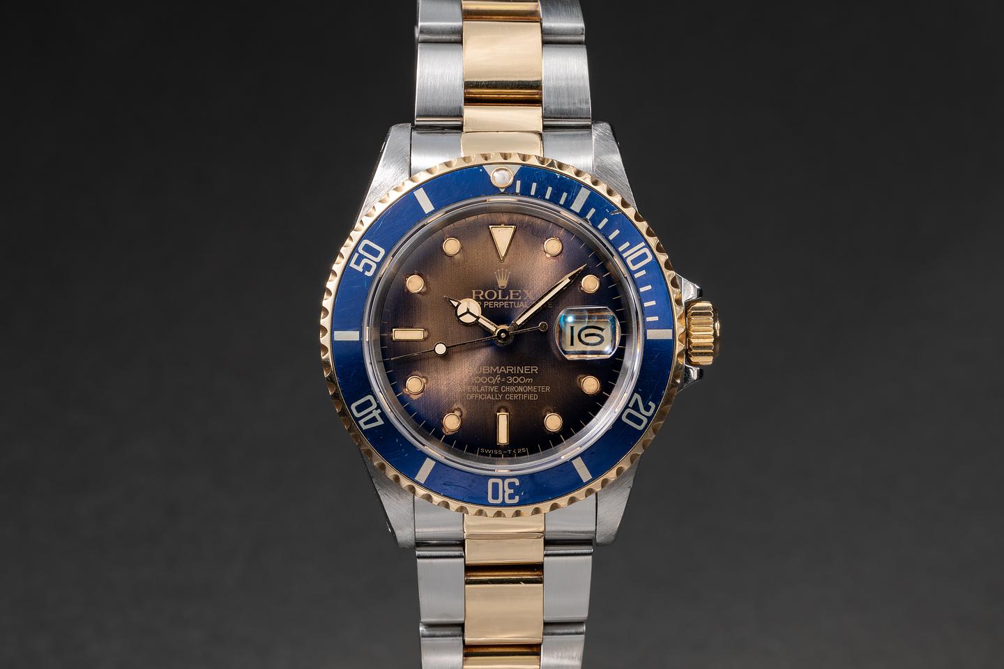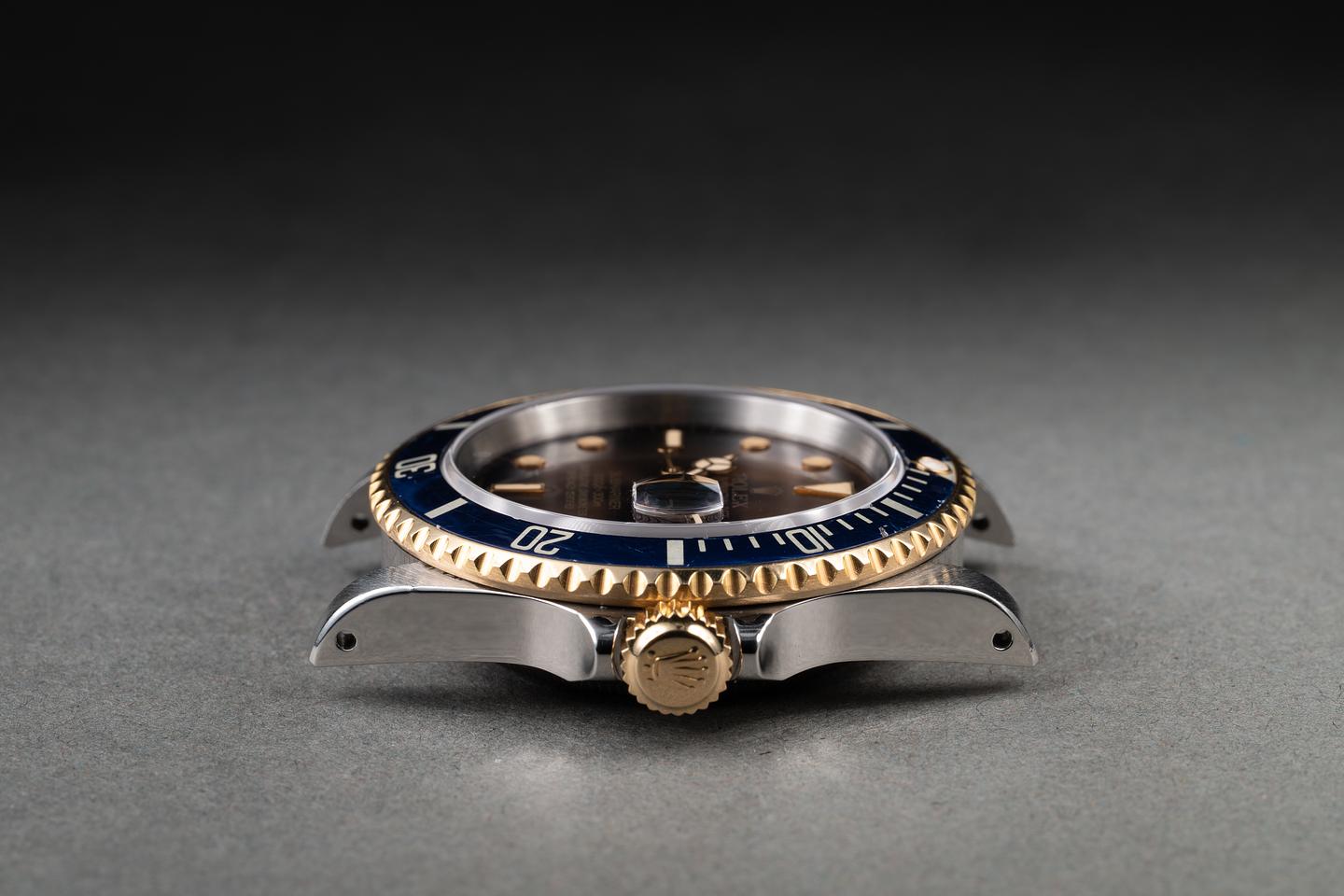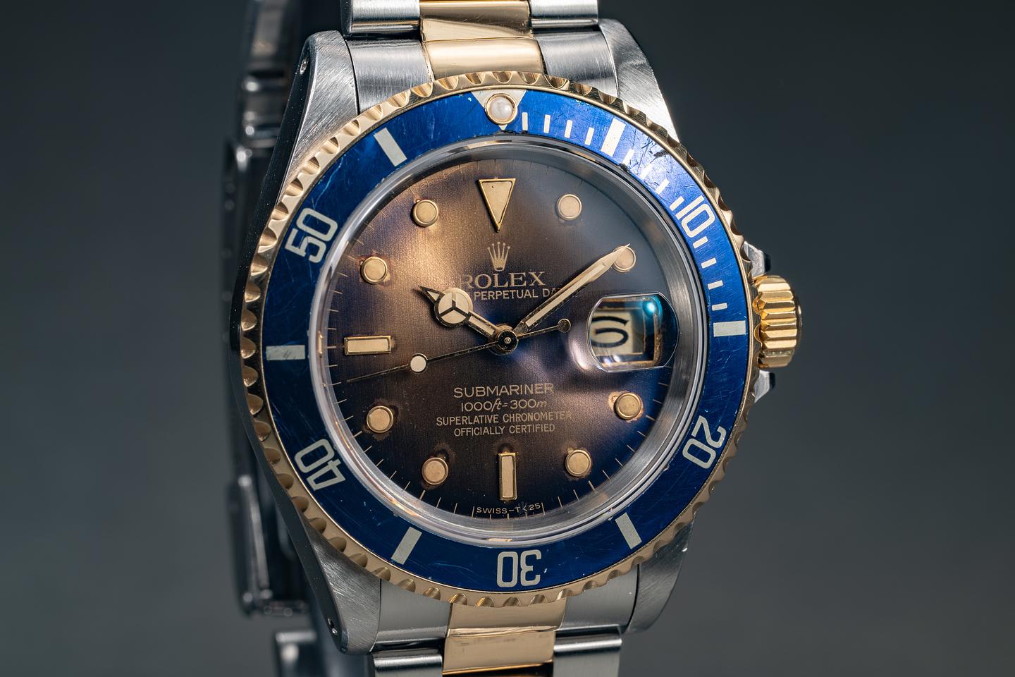 Dial: The blue/gold tropical dia is excellent, showing only very light wear for its age. The blue dial is fading to a beautiful tropical patina, showing the gold base layer of the dial. The lume has aged to a warm creamy hue, and the hands have aged slightly lighter than the dial.