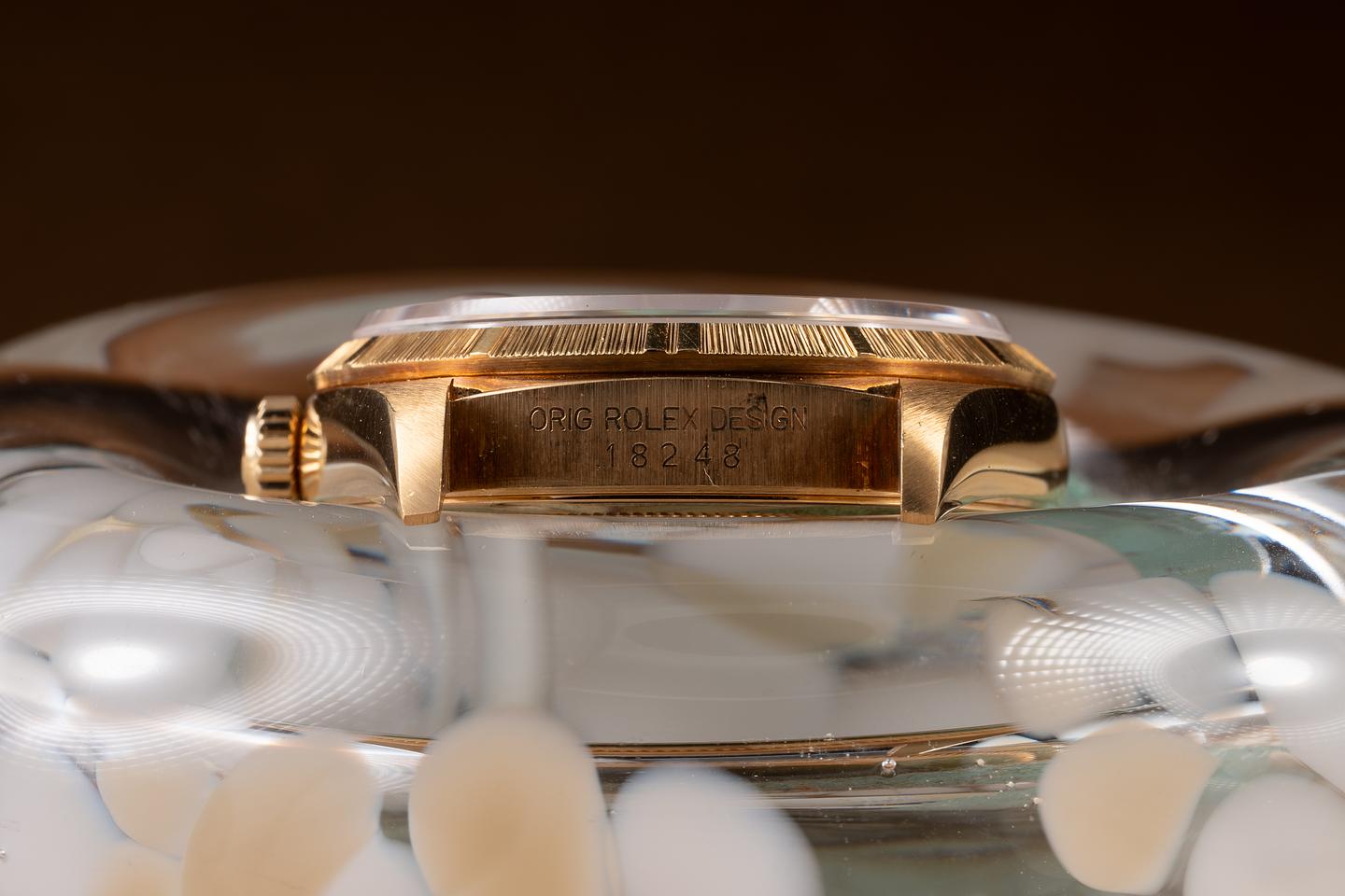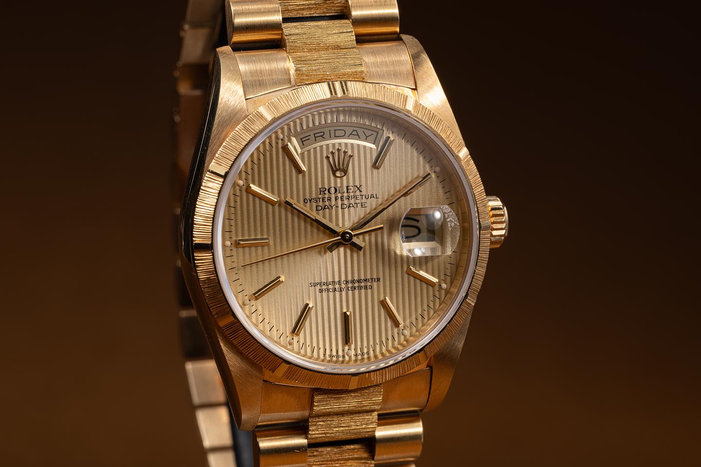Bracelet: The 22-link 18K yellow gold President bracelet is excellent, showing only very light stretch for its age.