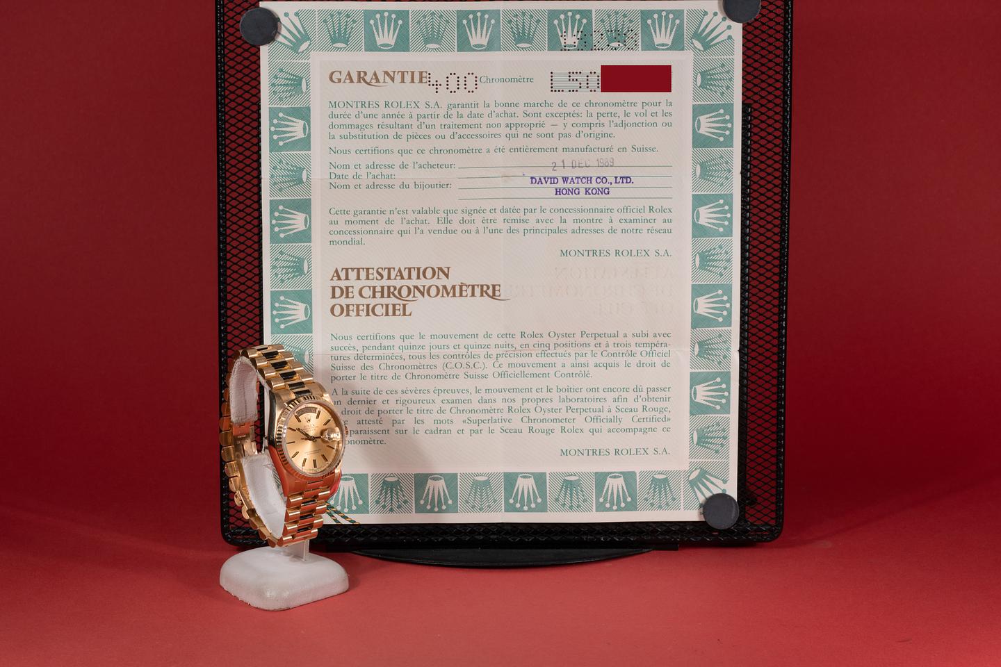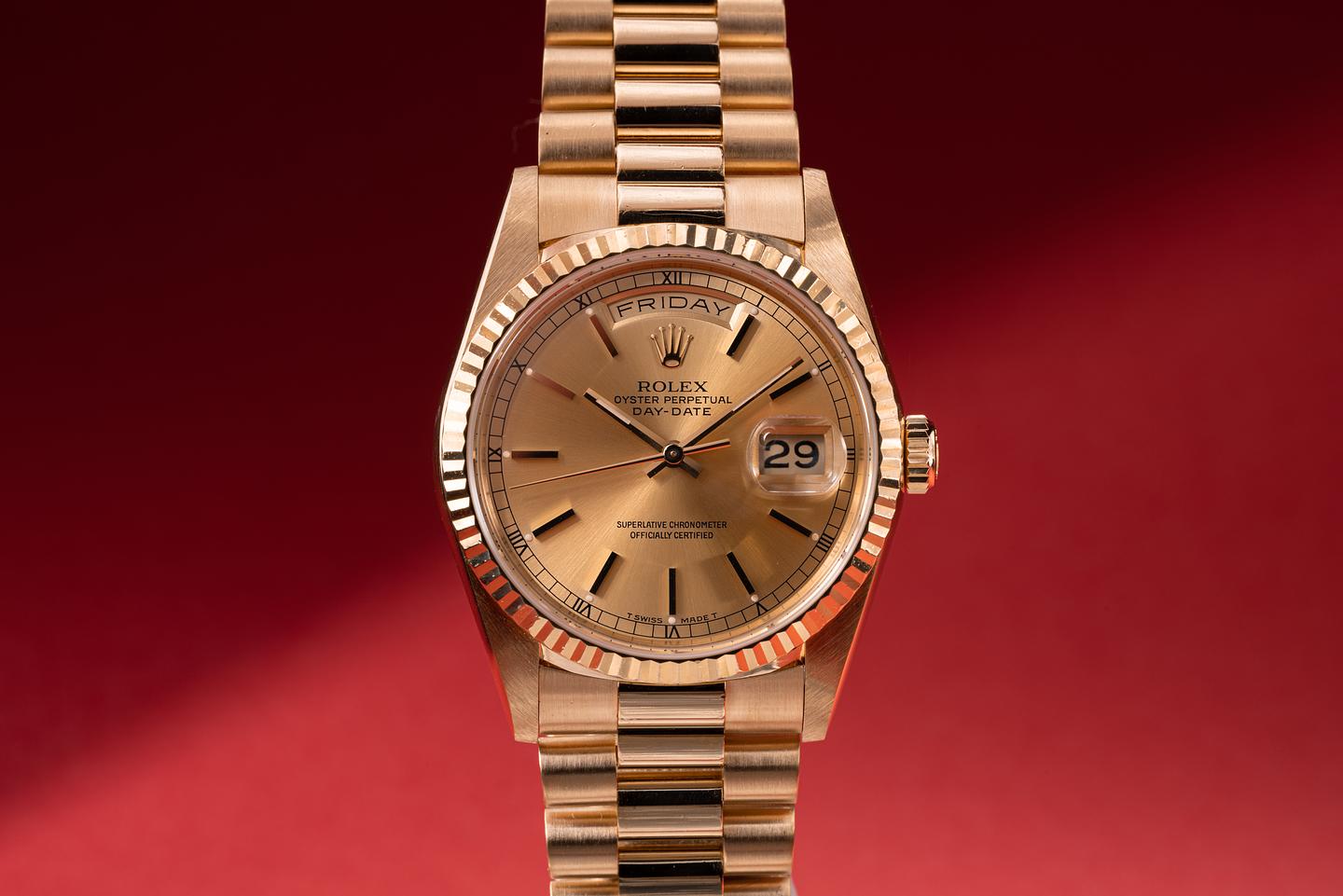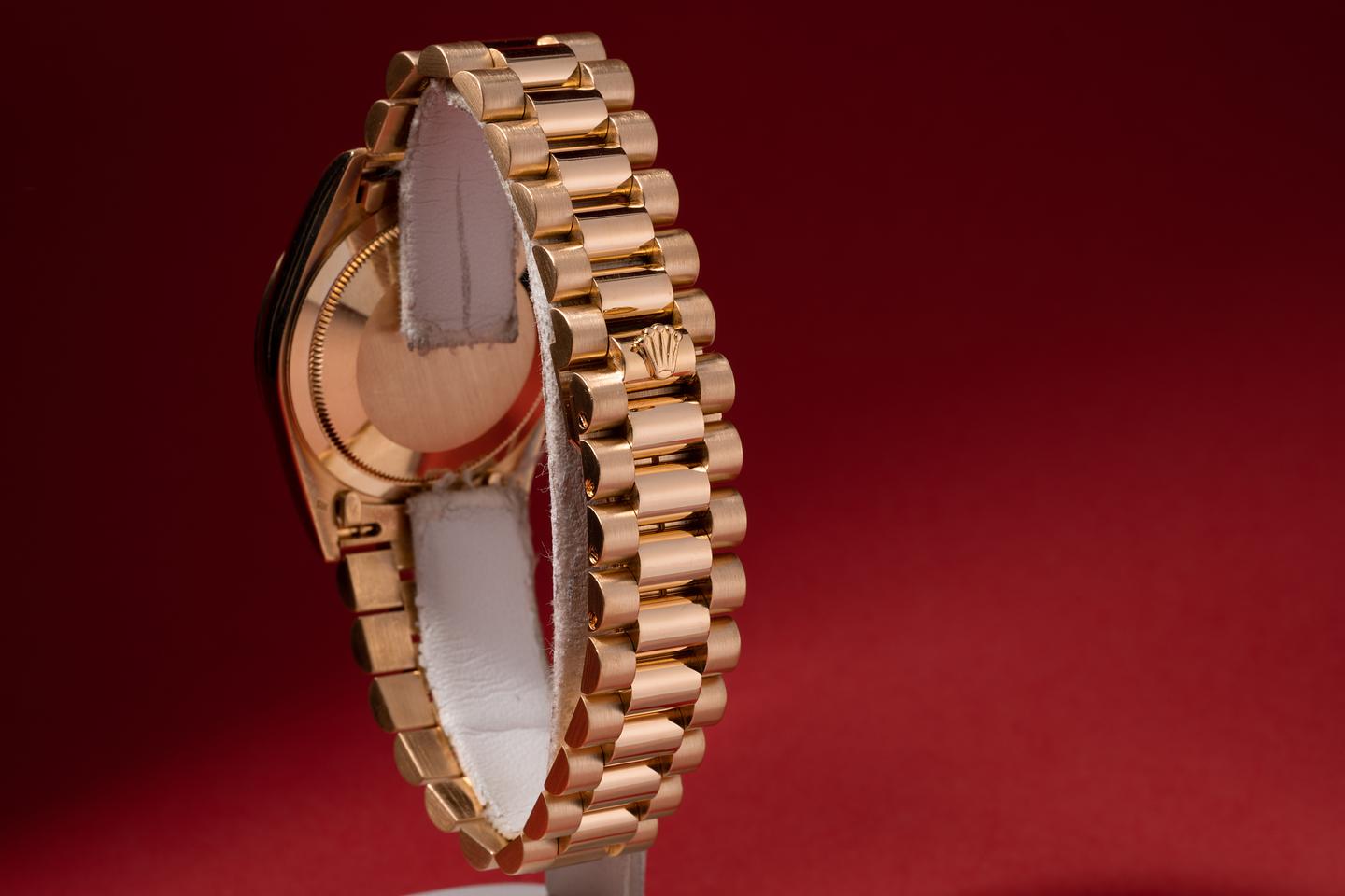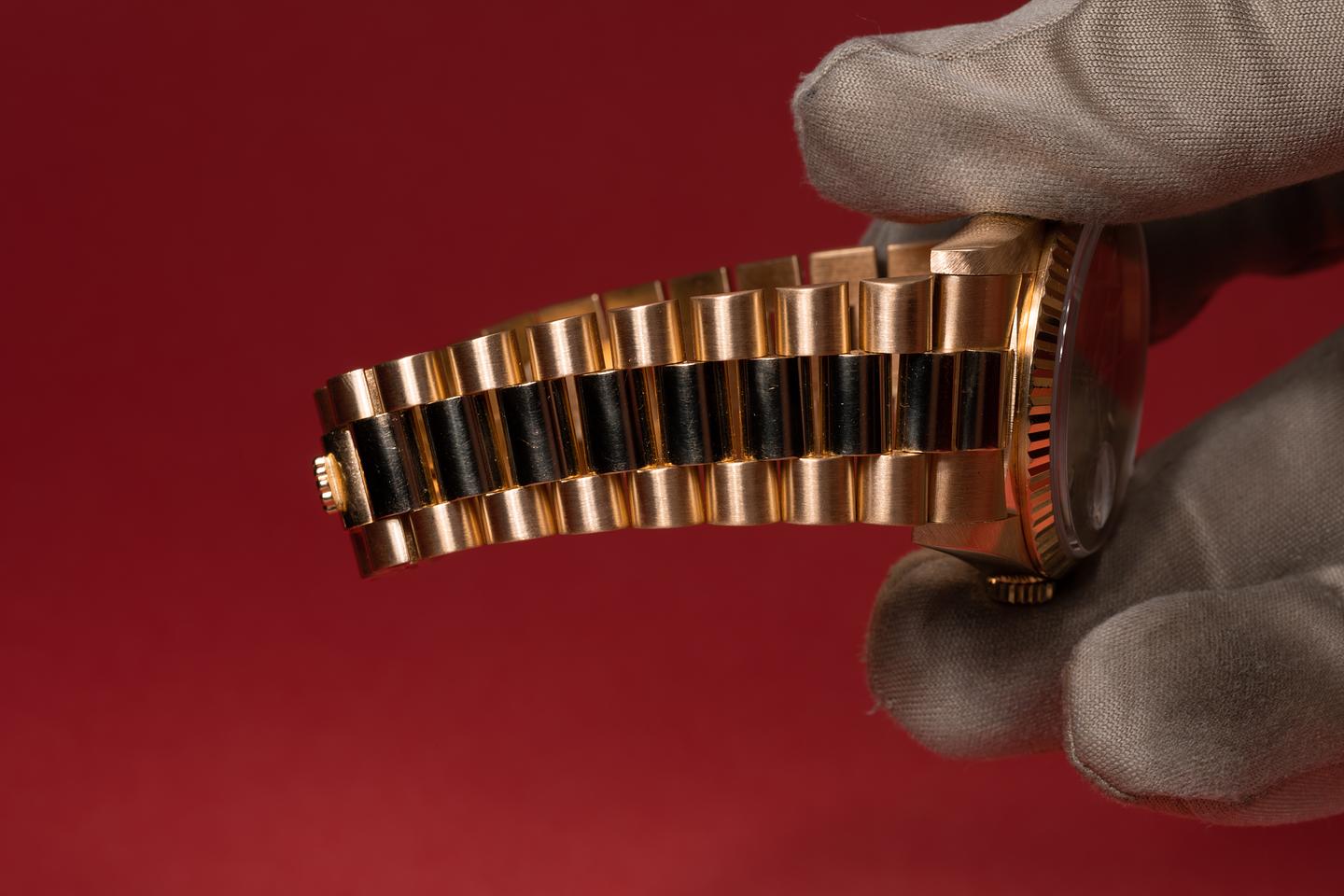 Bracelet: The 23 link 18k yellow gold President bracelet is excellent showing some light stretch for its age.