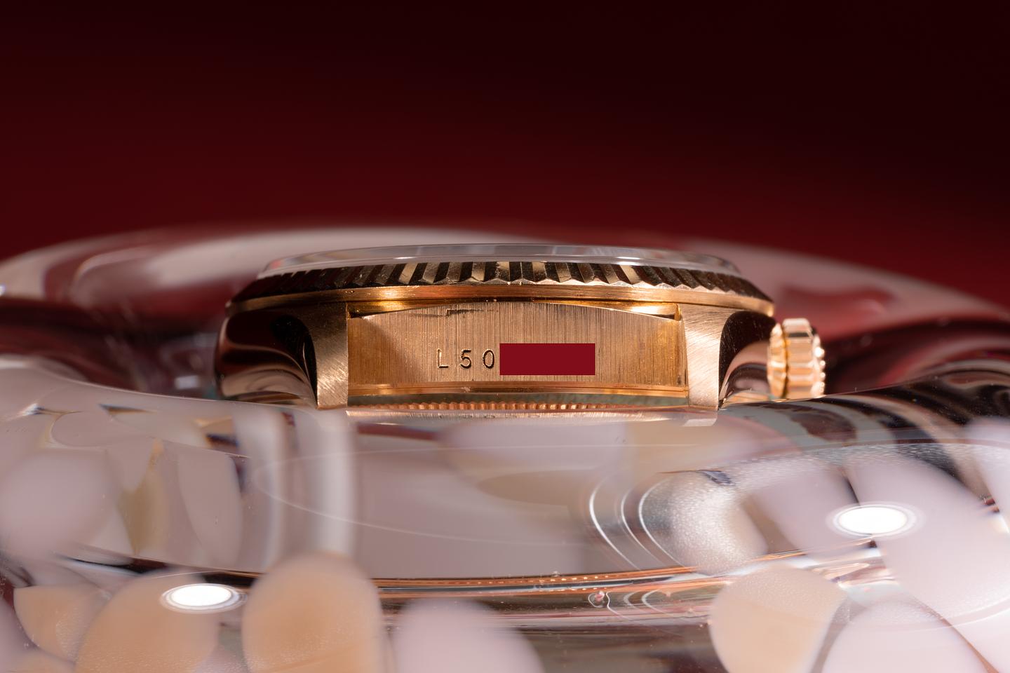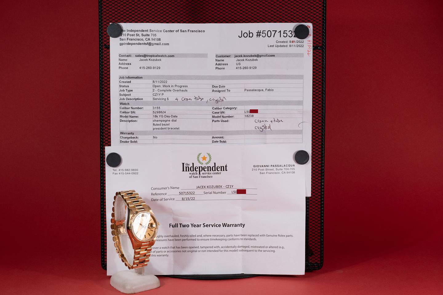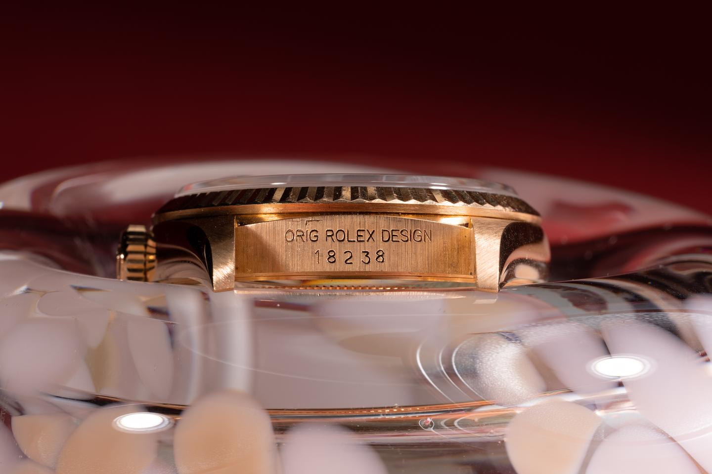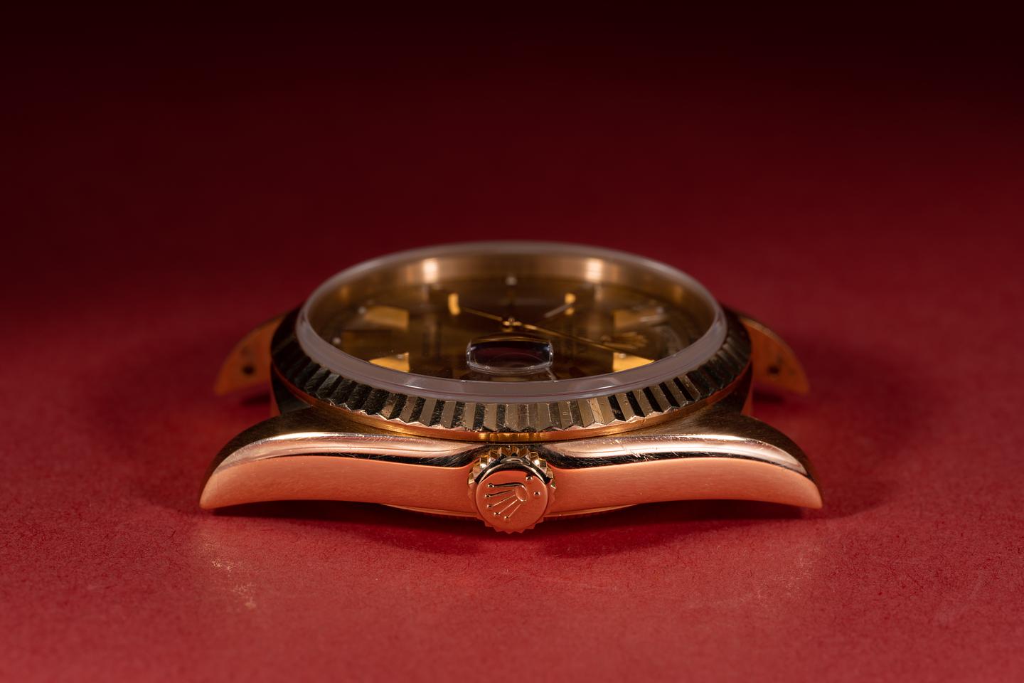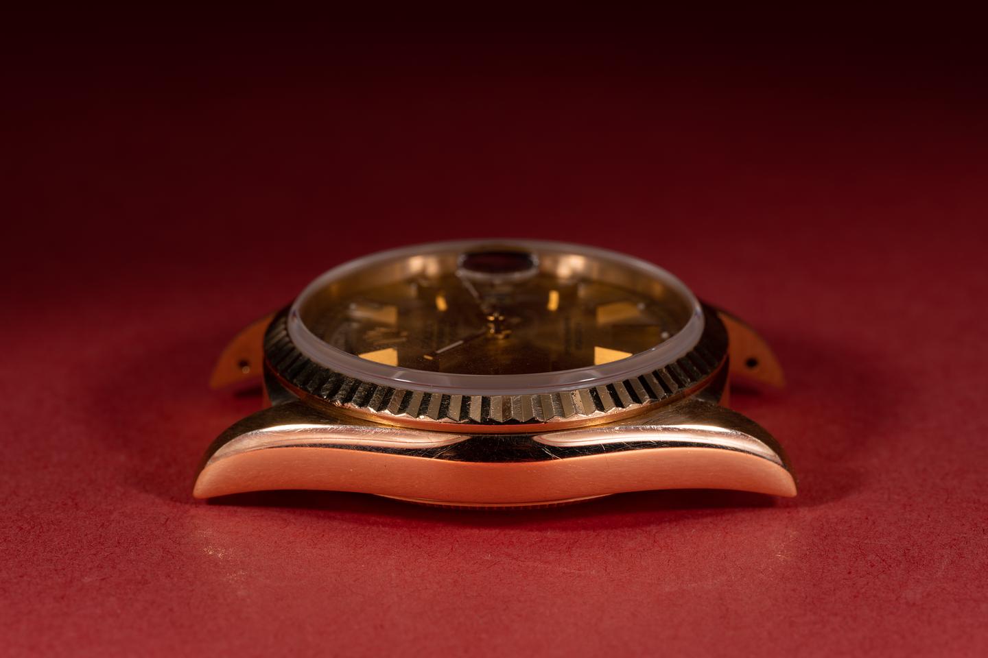 Case: The 18k yellow gold case is excellent showing light wear from use. The sharp 18k yellow gold fluted bezel is also in excellent condition showing only light wear from use.