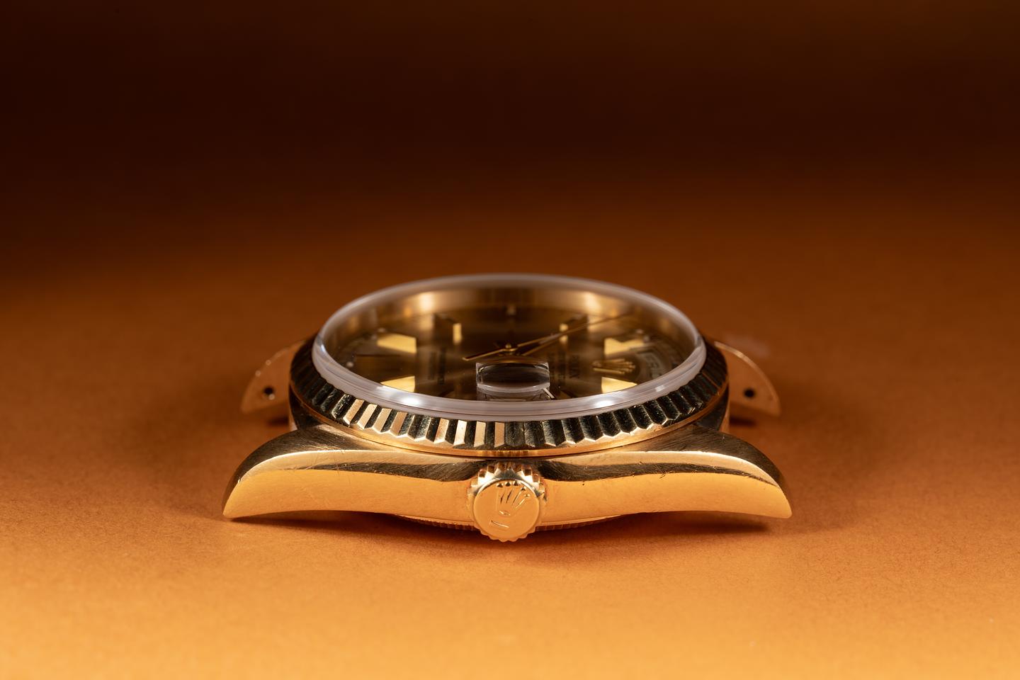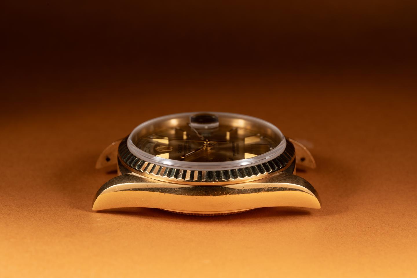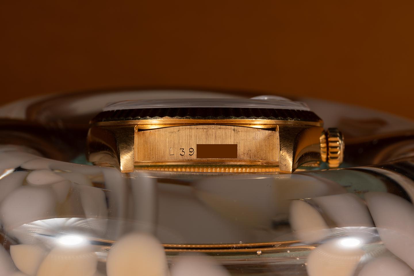 Case: The 18k yellow gold case is excellent showing only light wear from use. The 18k yellow gold fluted bezel is also in excellent condition showing only light wear from use.