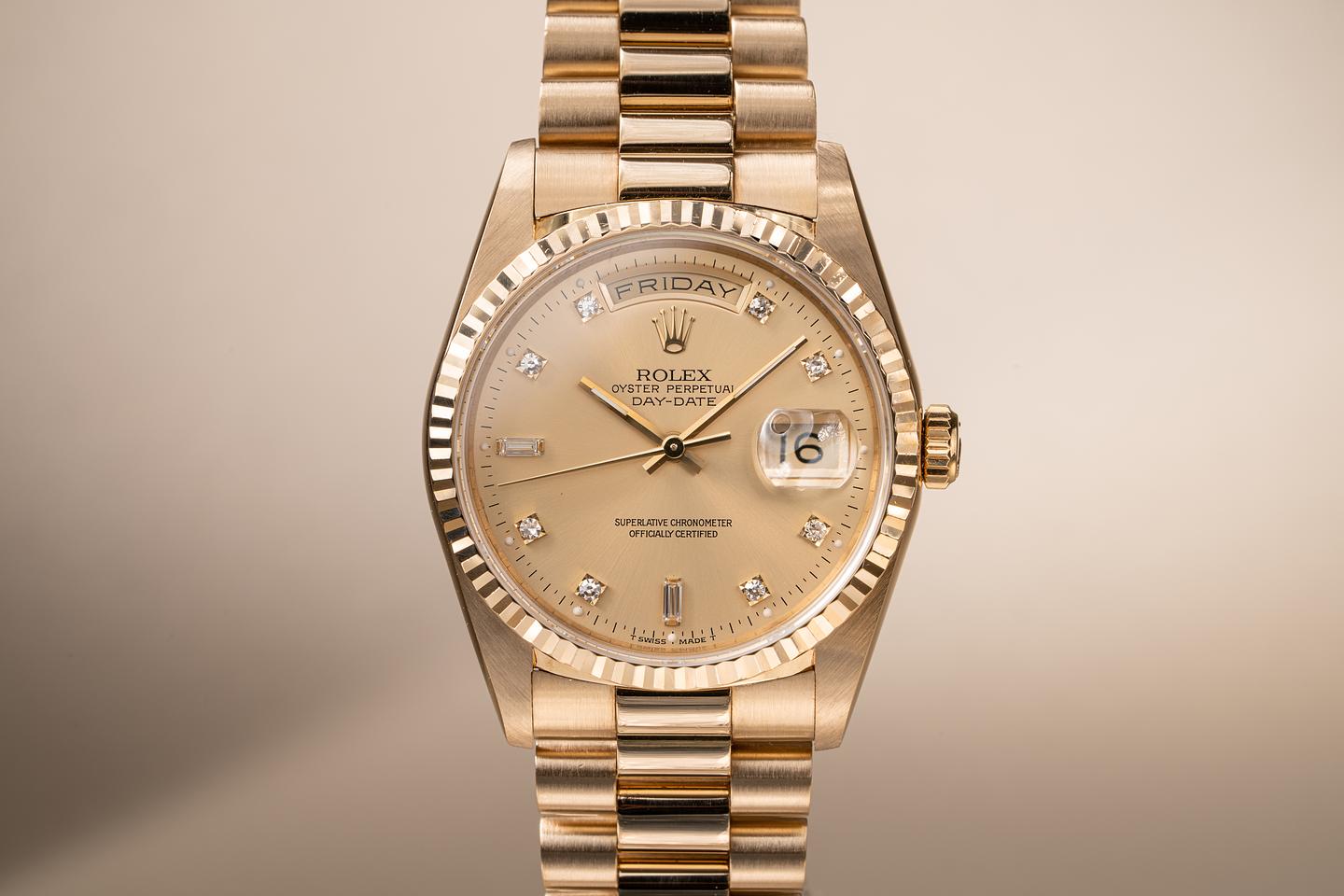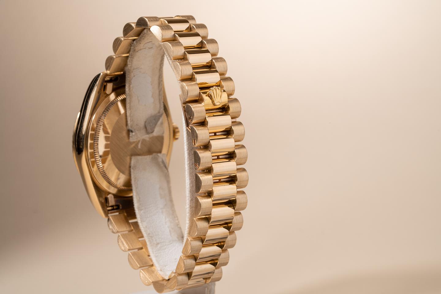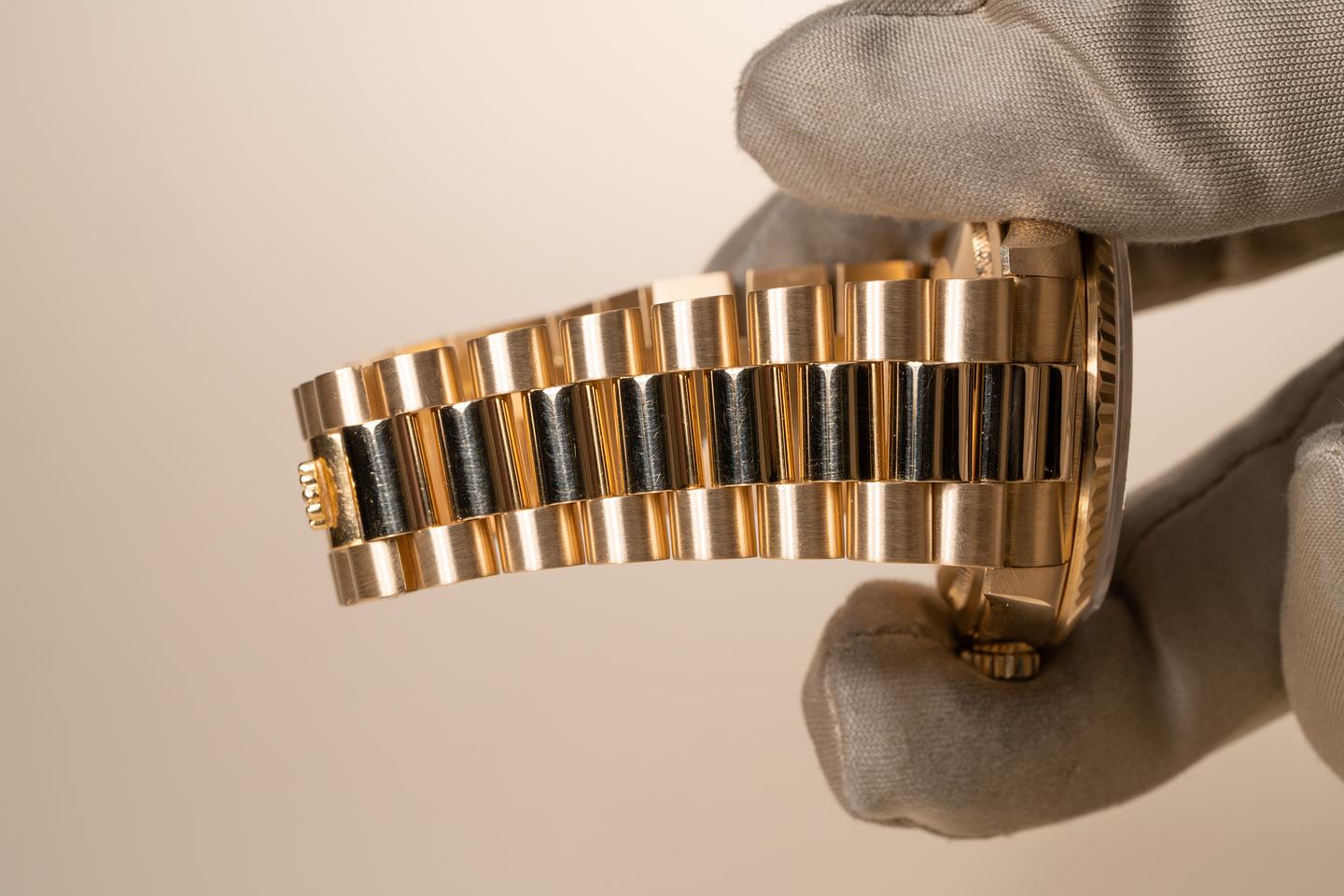 Bracelet: The 22 link 18k yellow gold President bracelet is excellent showing only light stretch for its age.