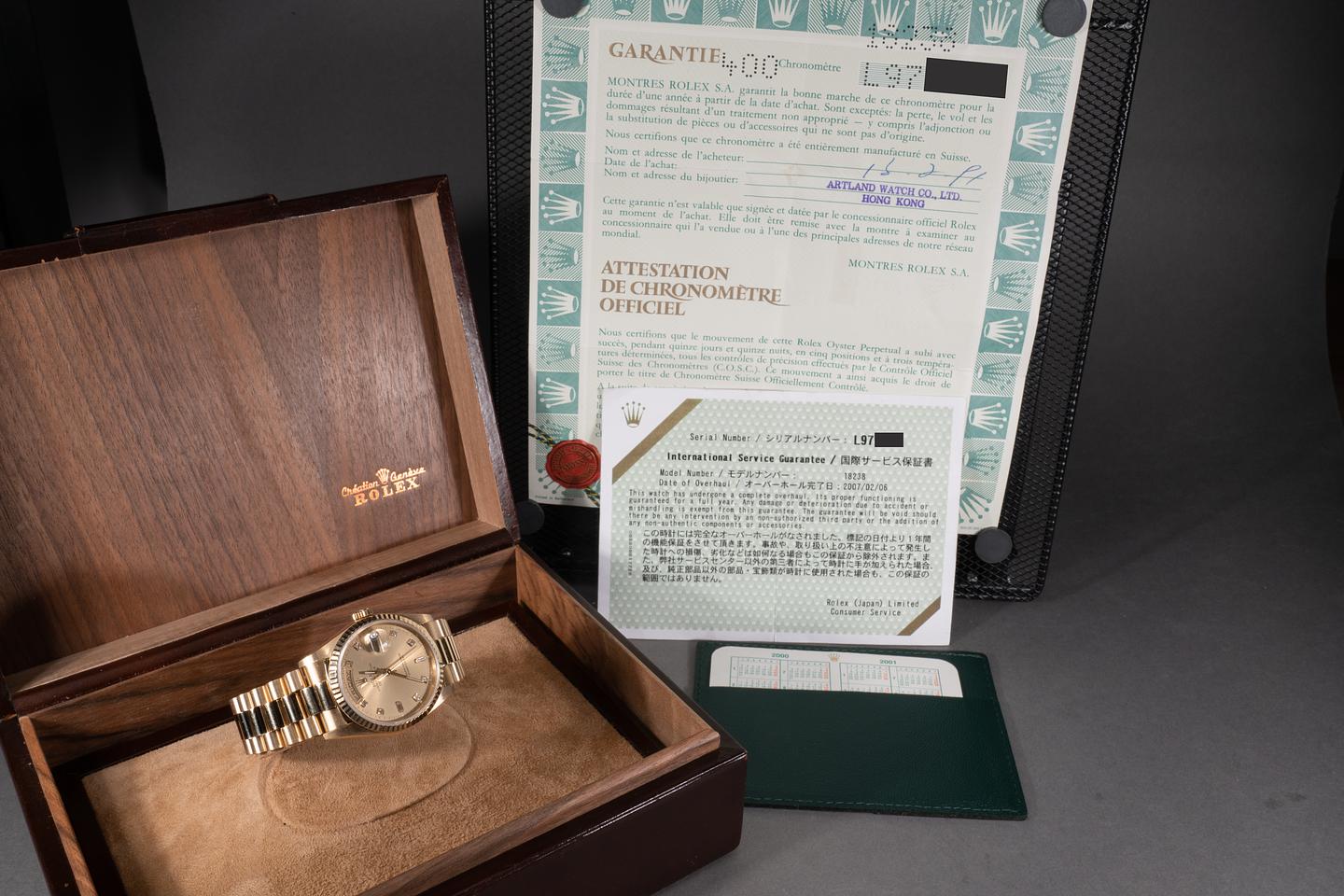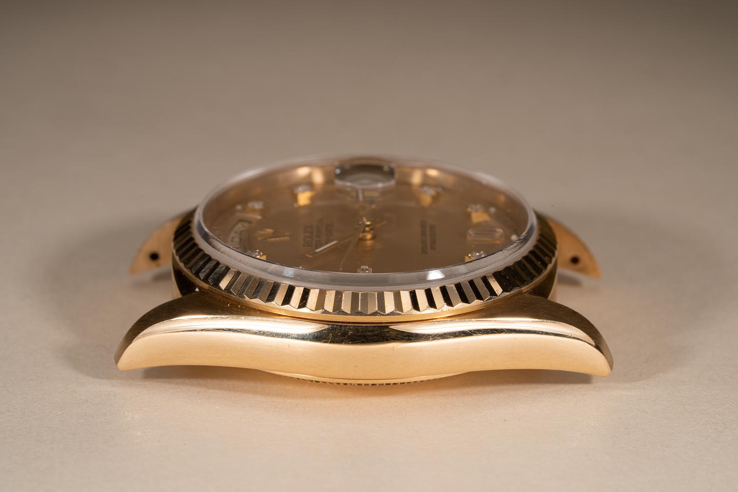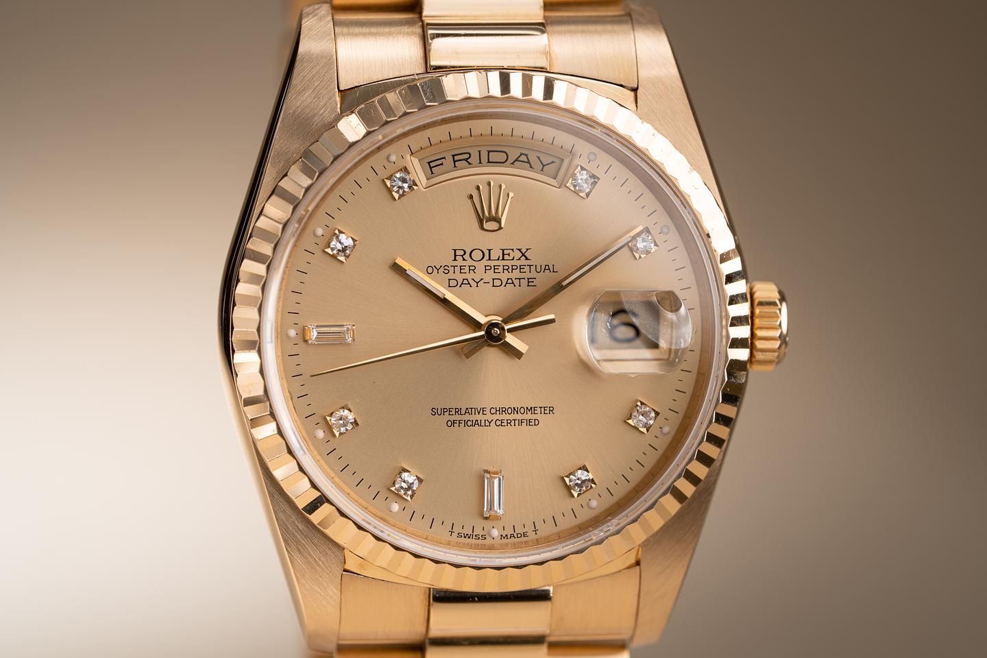 Bracelet: The 22 link 18k yellow gold President bracelet is excellent showing only light stretch for its age.