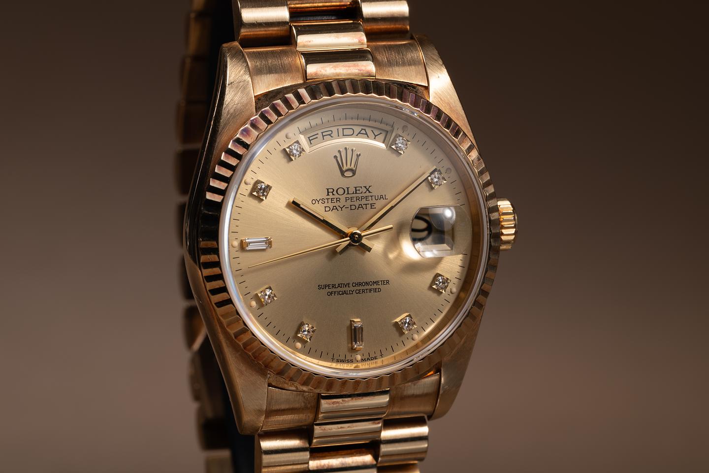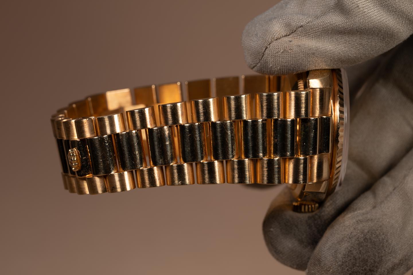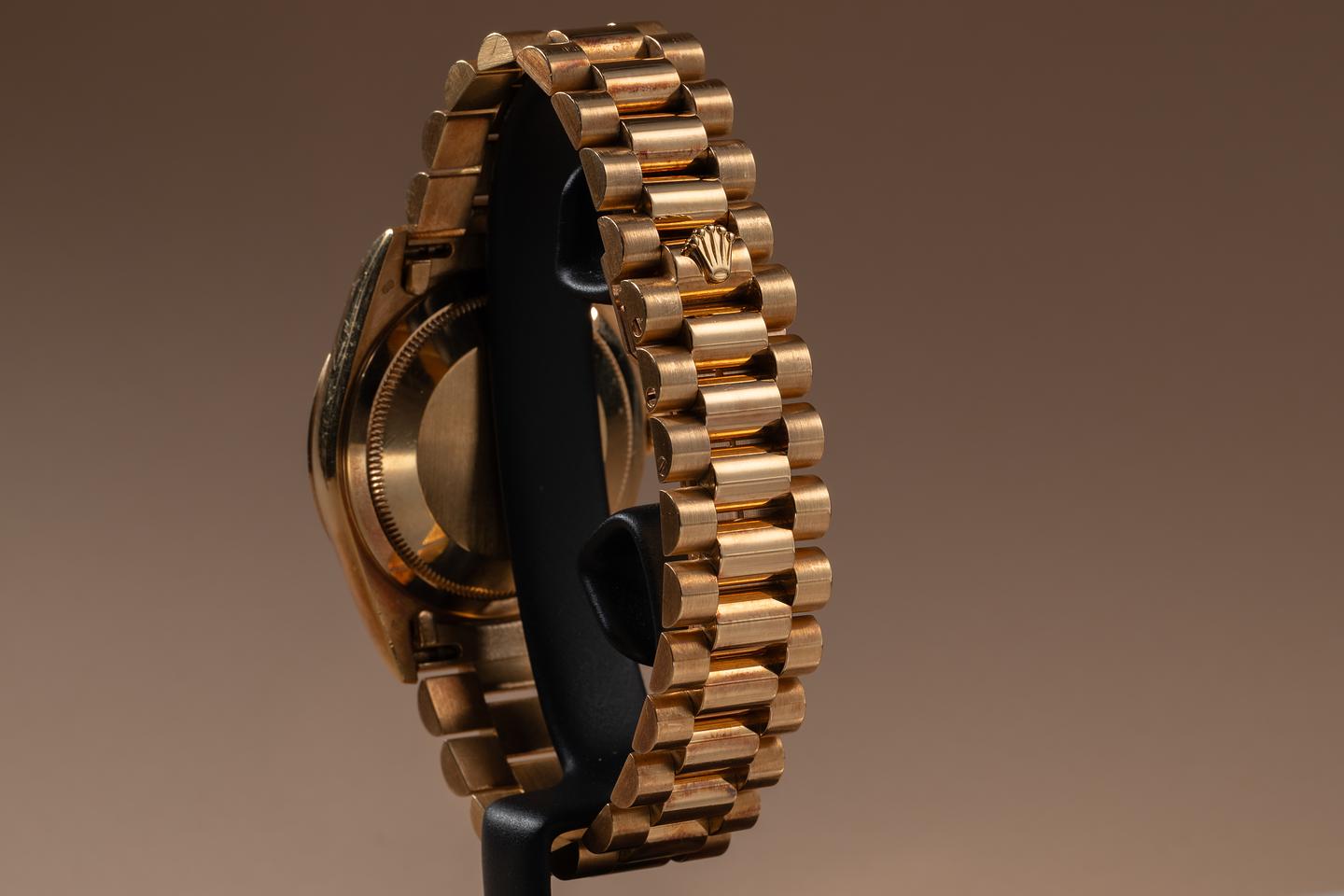 Bracelet: The 22-link 18K yellow gold President bracelet is excellent, showing only very light stretch for its age.