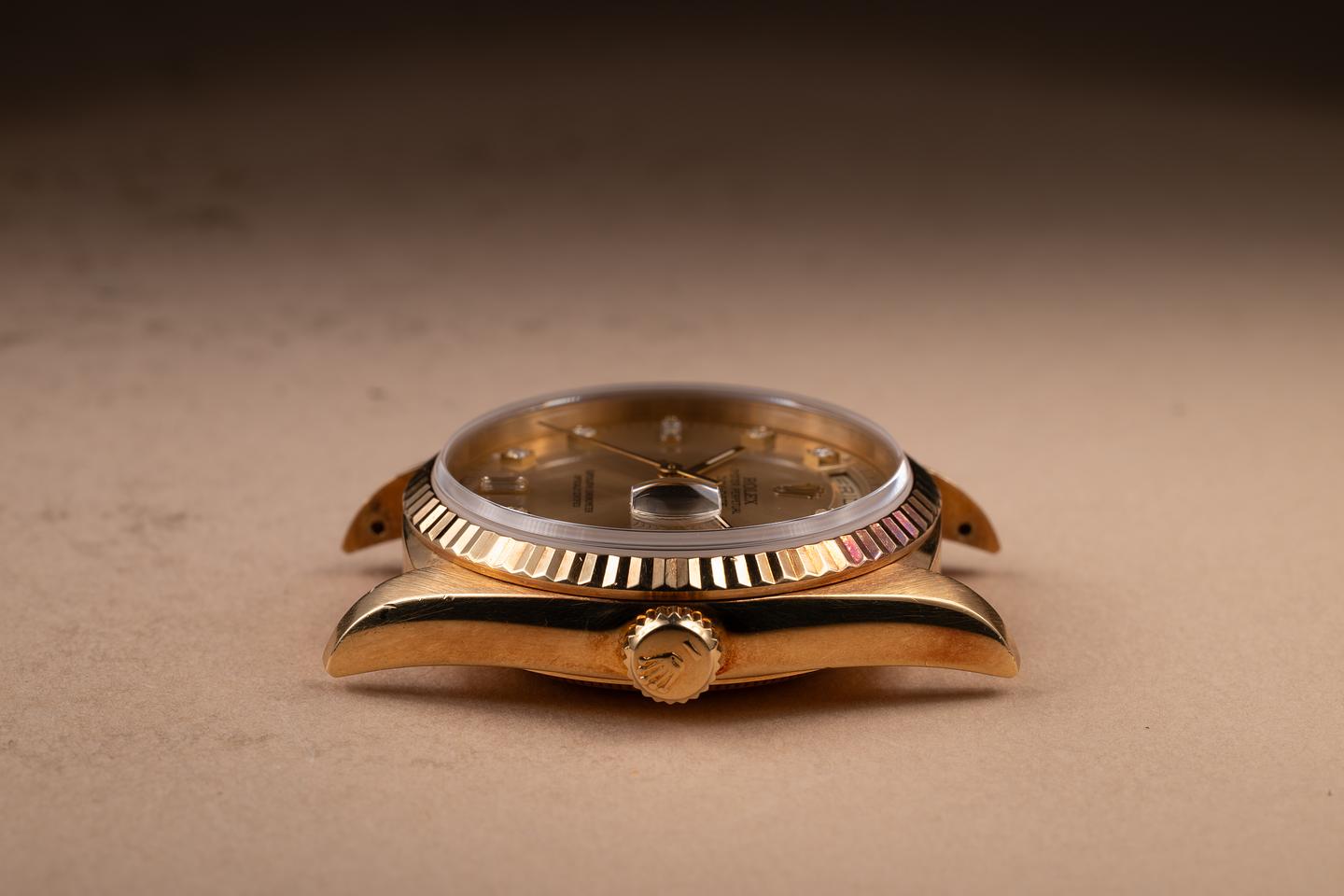 Dial: The champagne diamond dial is excellent, showing little if any wear for its age. The lume has aged to a warm, creamy hue, and the hands match perfectly.