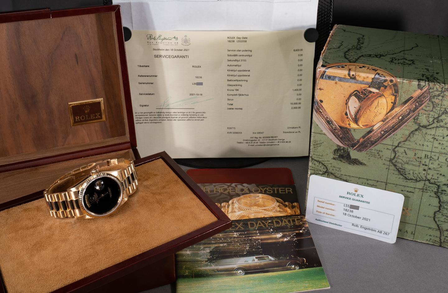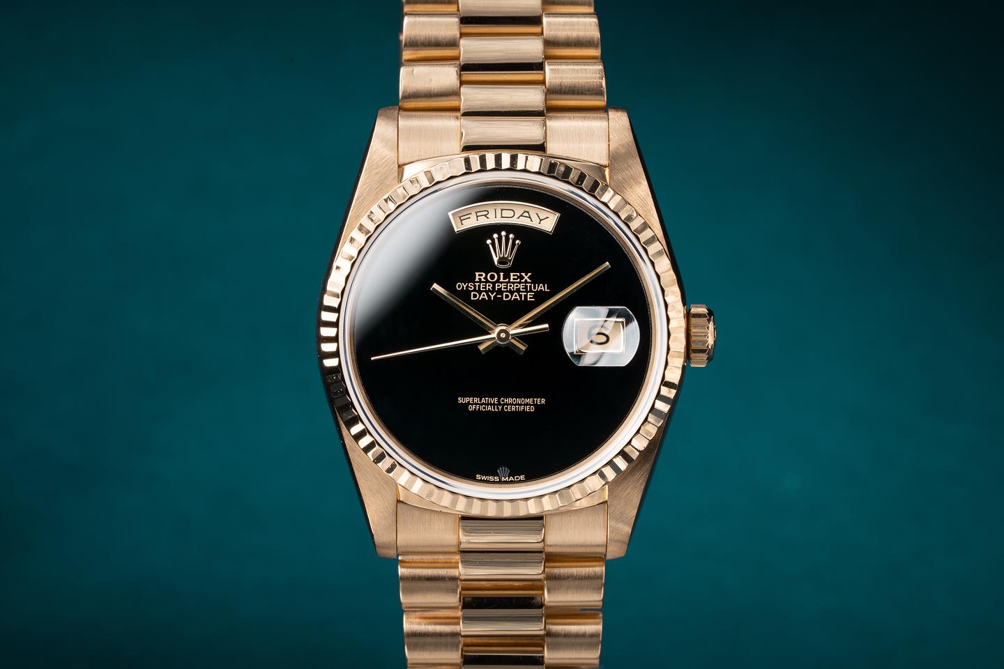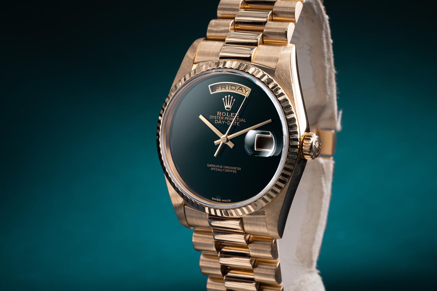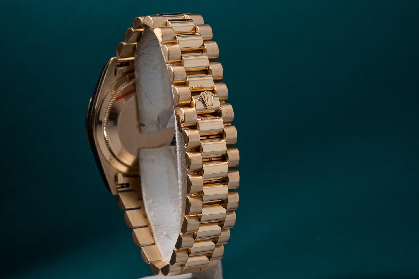 Bracelet: The 22 link 18k yellow gold president bracelet is excellent showing some light stretch for its age.