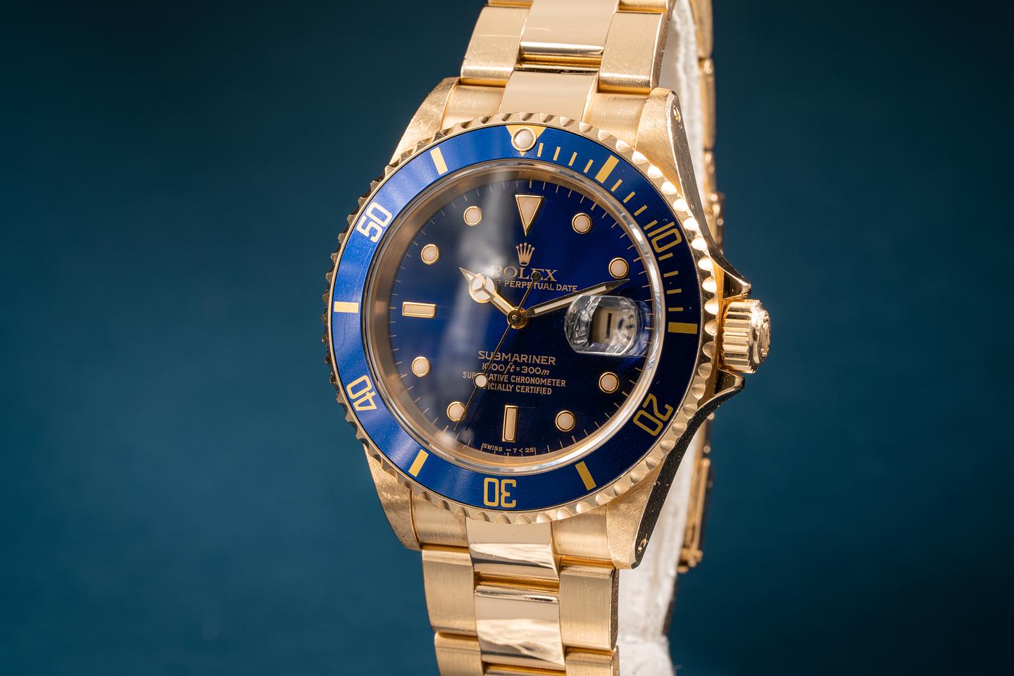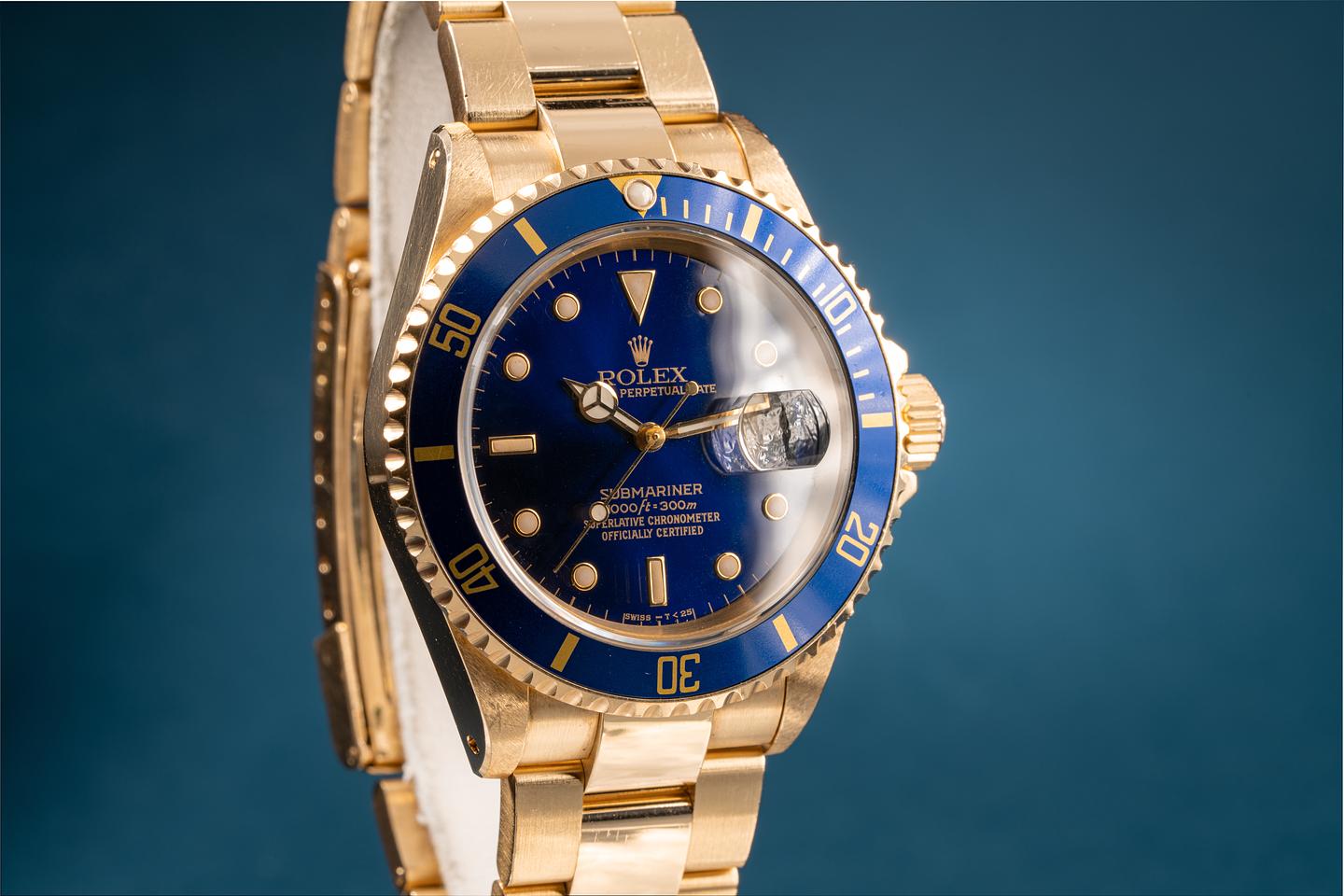 Notes: A beautiful blue and gold submariner.