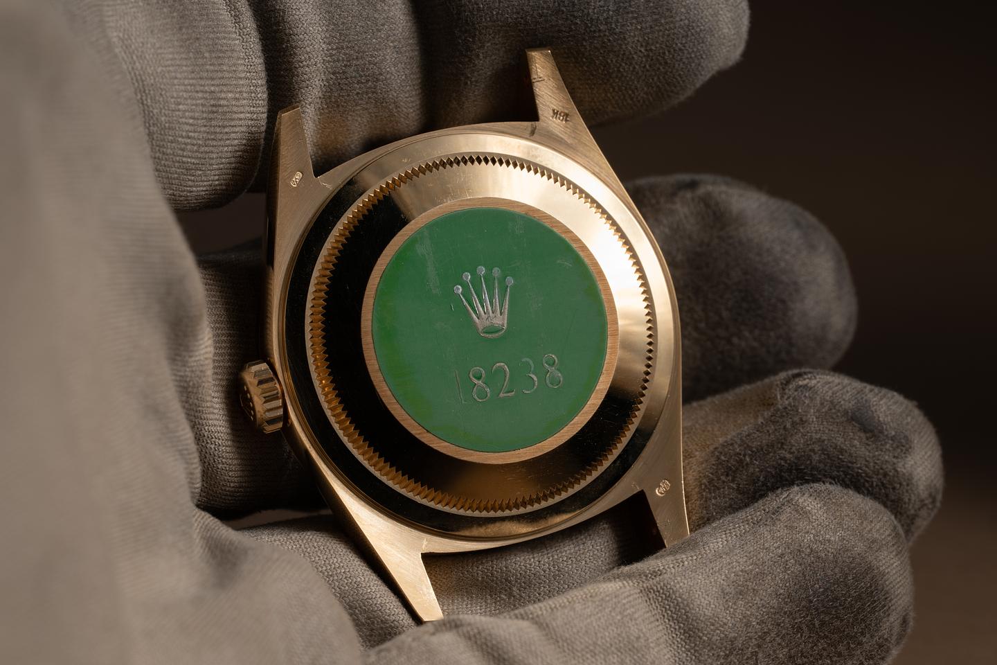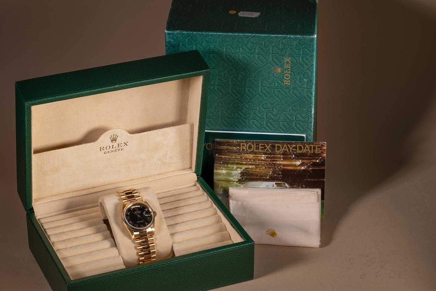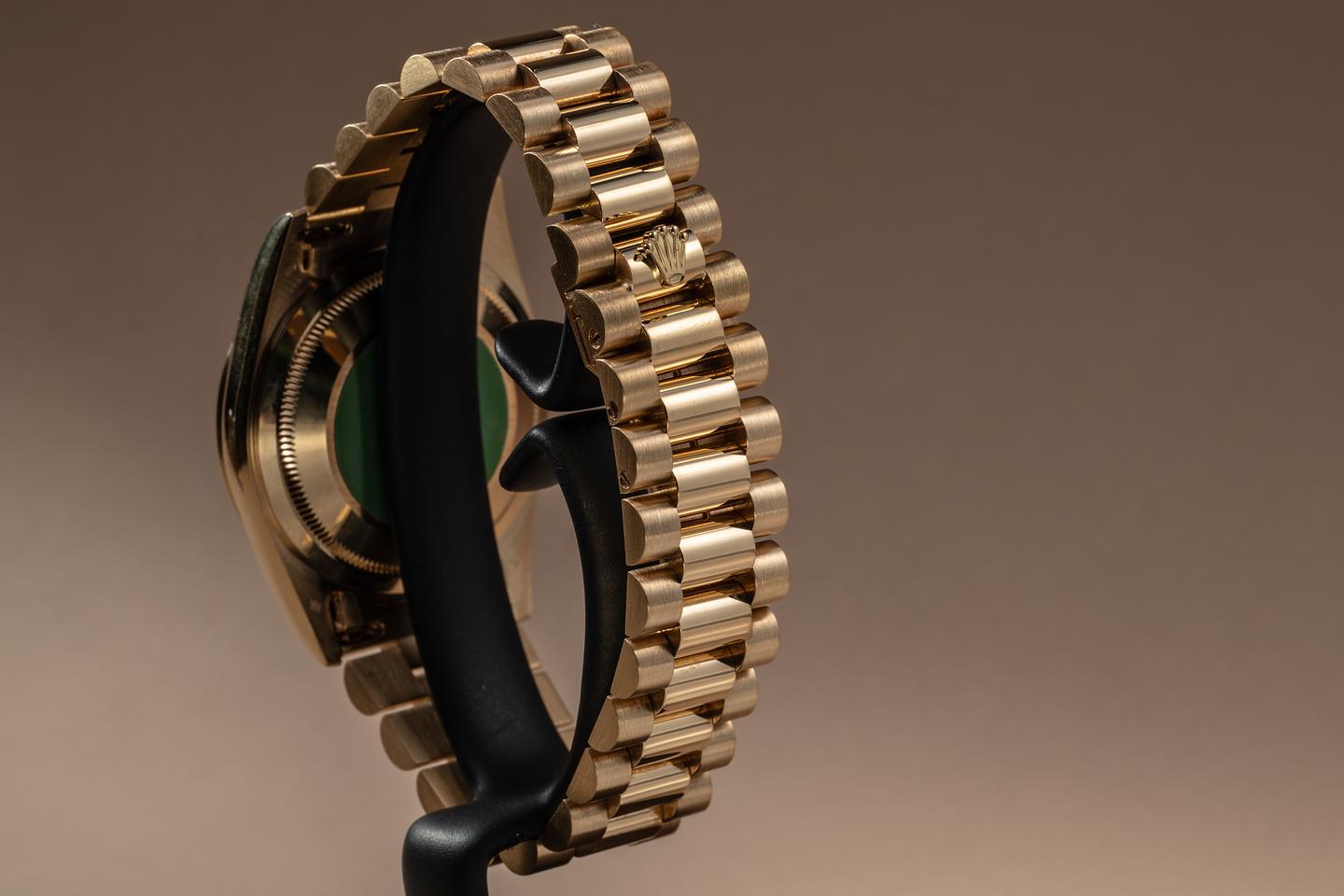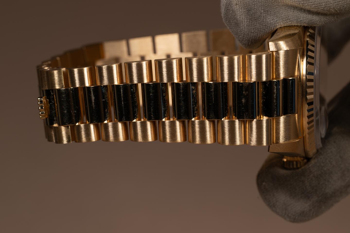 Bracelet: The 22-link 18K yellow gold president bracelet is excellent, showing only very light stretch.