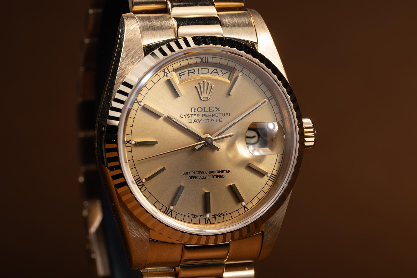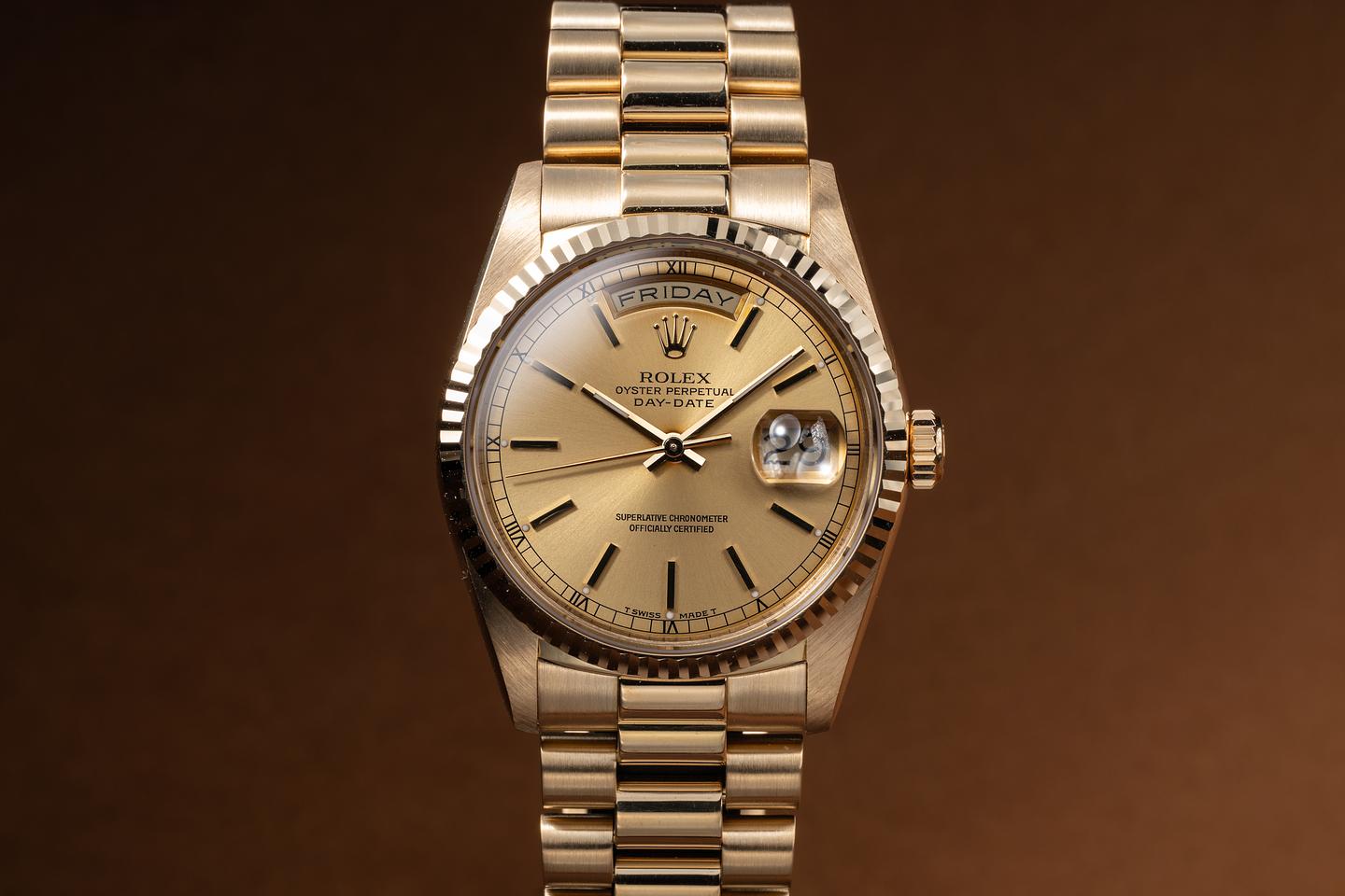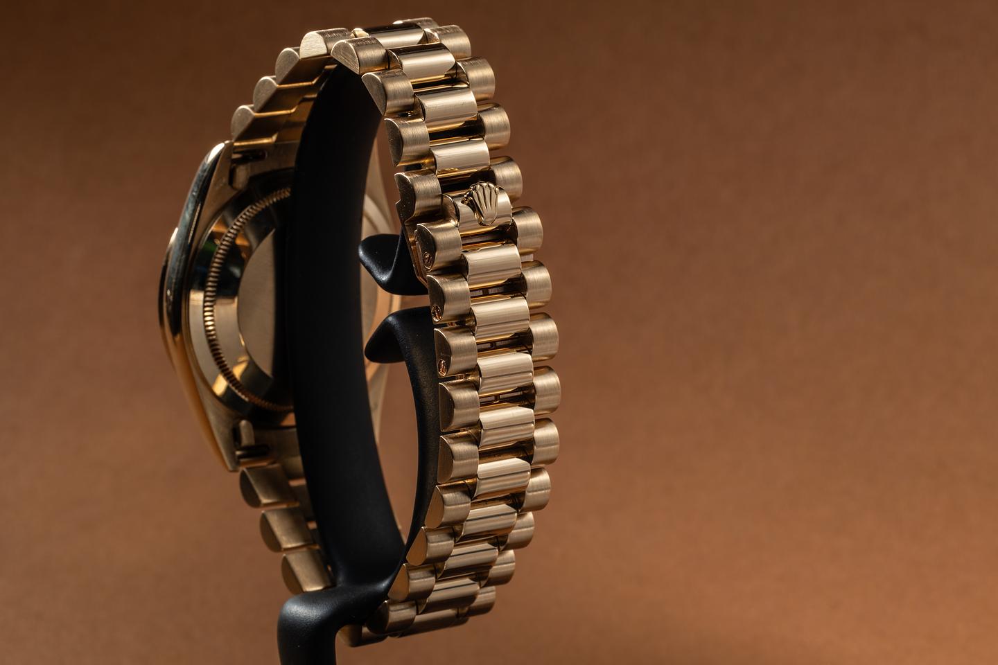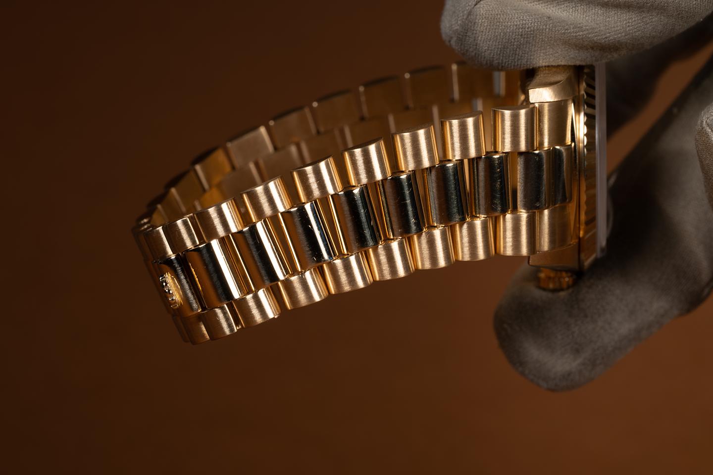 Bracelet: The 22-link 18K yellow gold President bracelet is excellent, showing some light stretch for its age.