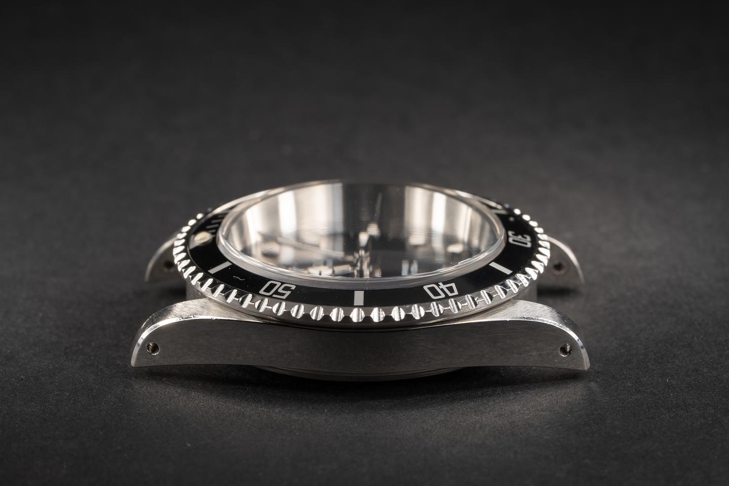 Case: The thick even case is unpolished with the thick and wide factory bevels intact.