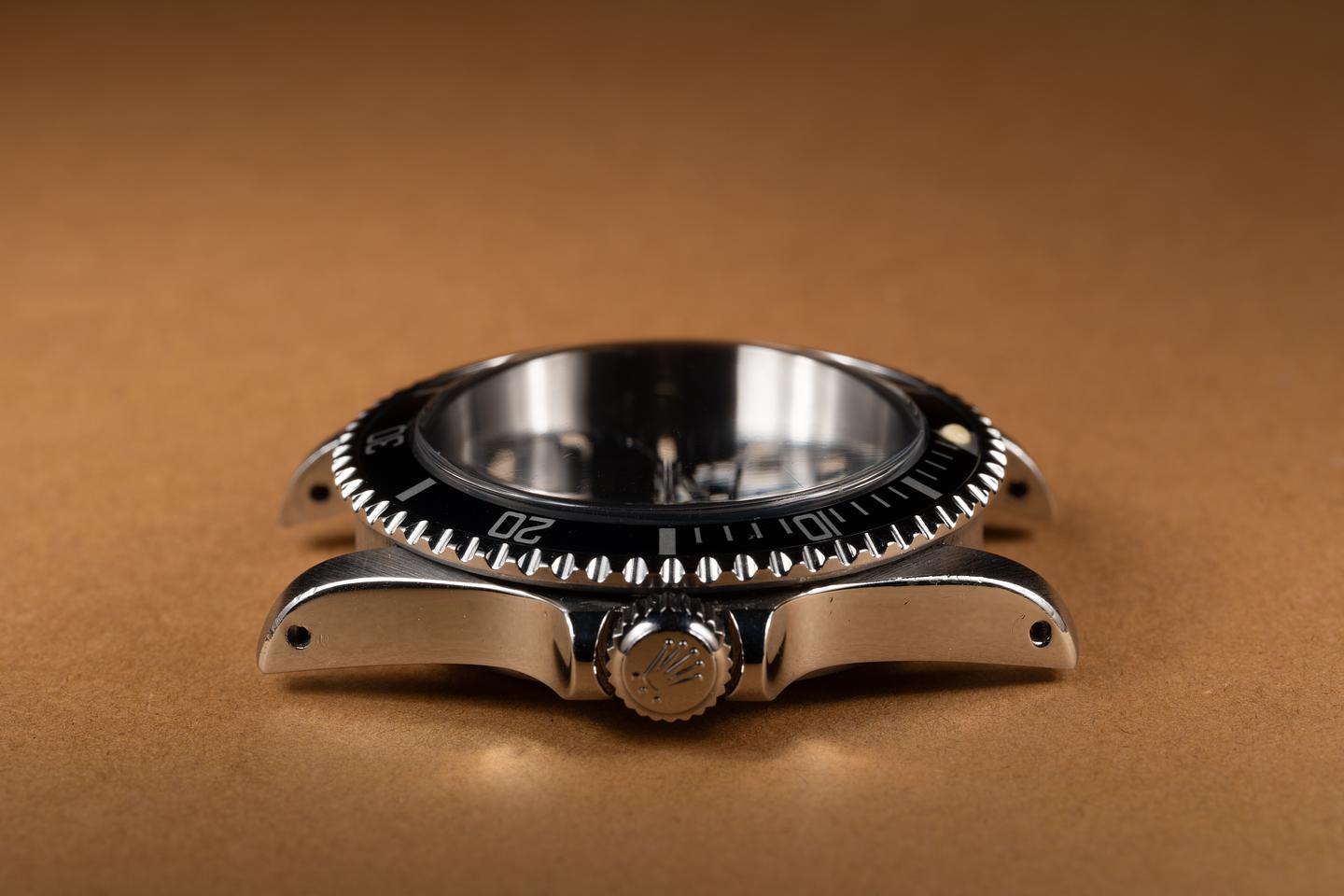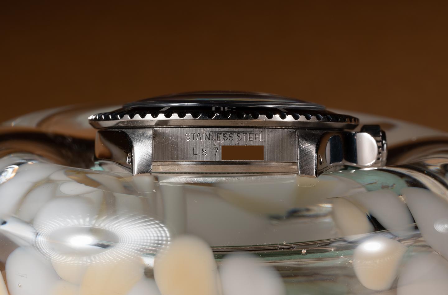 Case: The previously polished case is excellent showing some light wear from use. The black bezel insert is also in excellent condition showing only light wear from use.