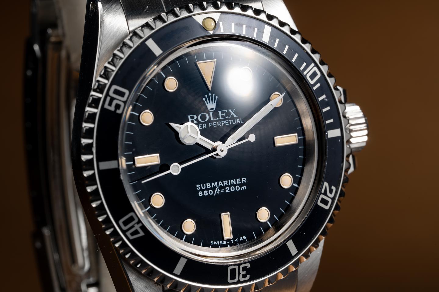 Dial: The glossy black dial is excellent showing little if any wear for its age. The lume has aged to a warm vibrant creamy hue and the hands have aged significantly lighter than the lume on the dial.