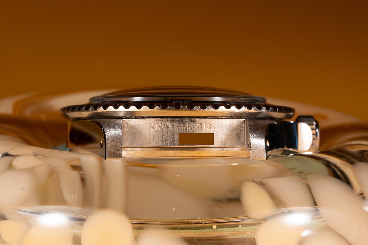 Case: The recently polished case is excellent showing sharp prominent bevels and only very light wear. The black bezel insert is also in excellent condition showing only very light wear from use.