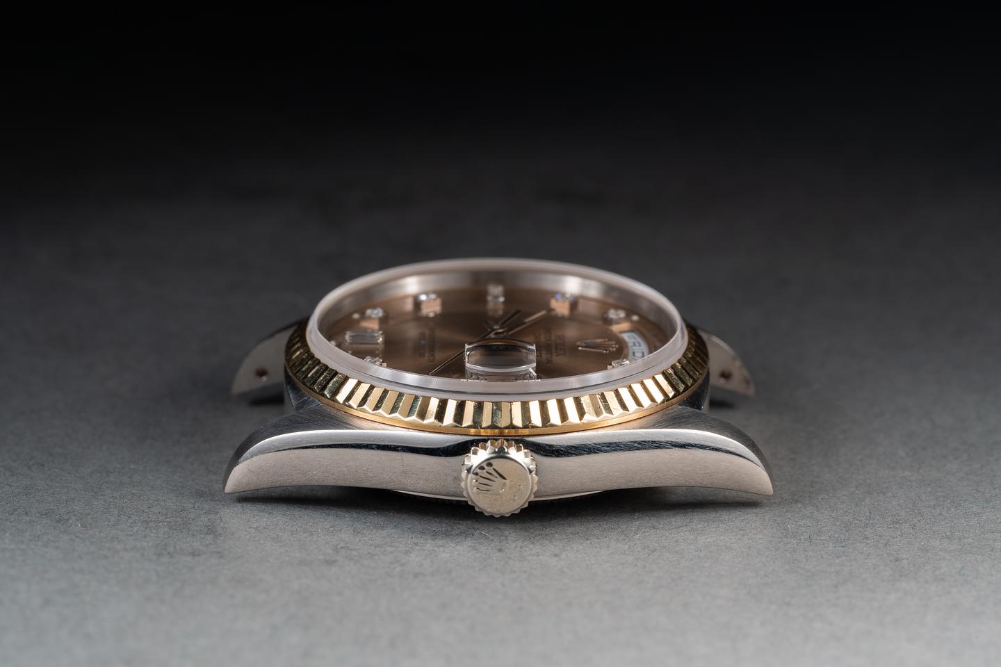 Dial: The salmon diamond dial is excellent showing no visible wear. The lume has aged to a clean creamy hue and the hands have aged a few shades warmer than the dial.