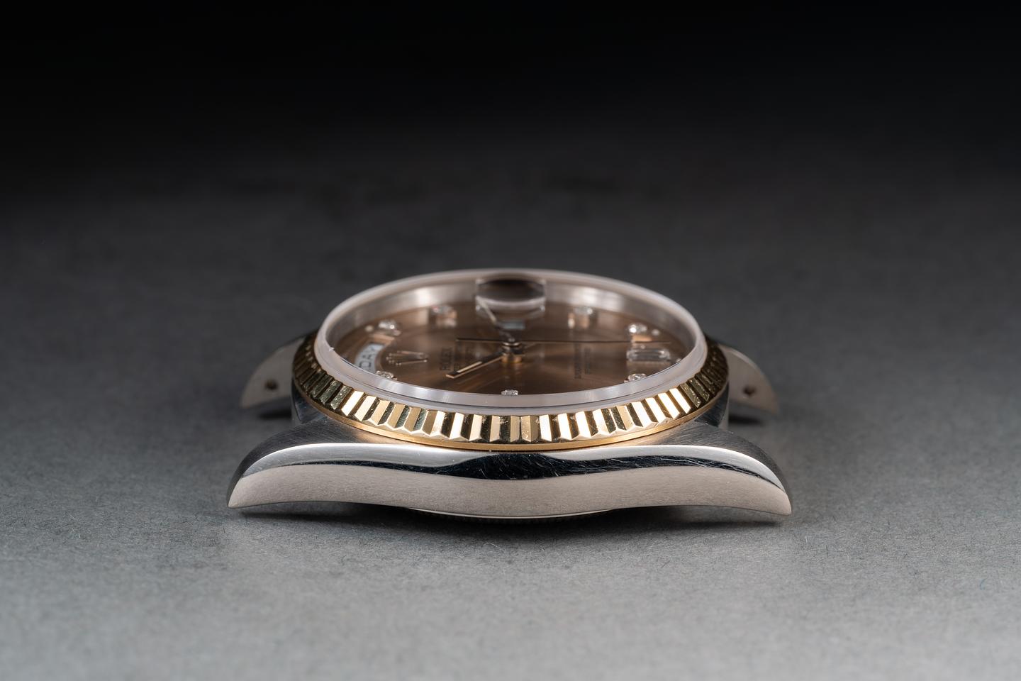 Case: The recently polished 18K white gold case is excellent showing only very light wear from use. The 18K yellow gold fluted bezel is also in excellent condition showing only very light wear.