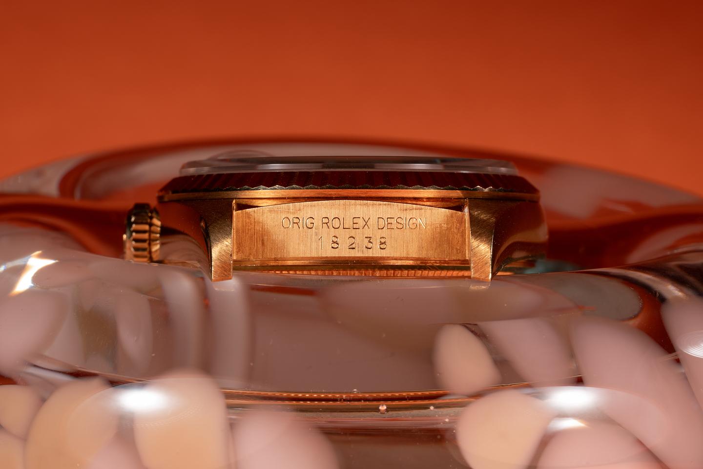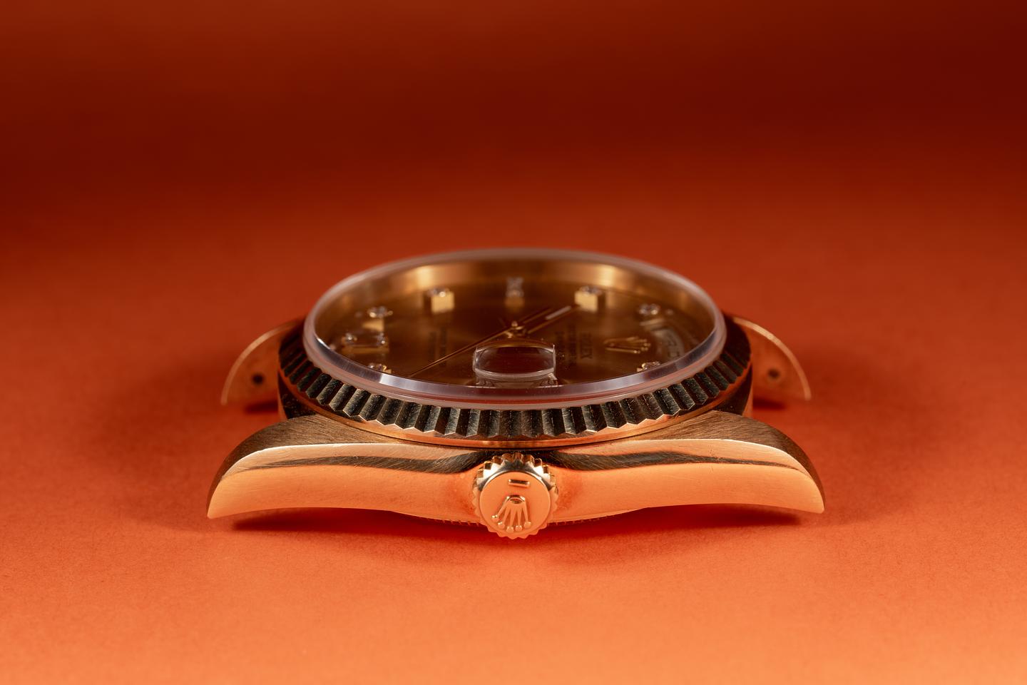 Case: The 36mm 18k yellow gold case is excellent showing a warm rosy patina and only very light wear from use. The sharp 18k yellow gold fluted bezel is also in excellent condition showing only very light wear from use.
