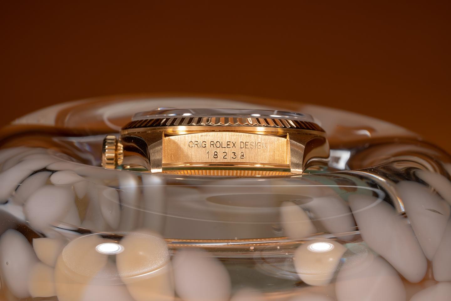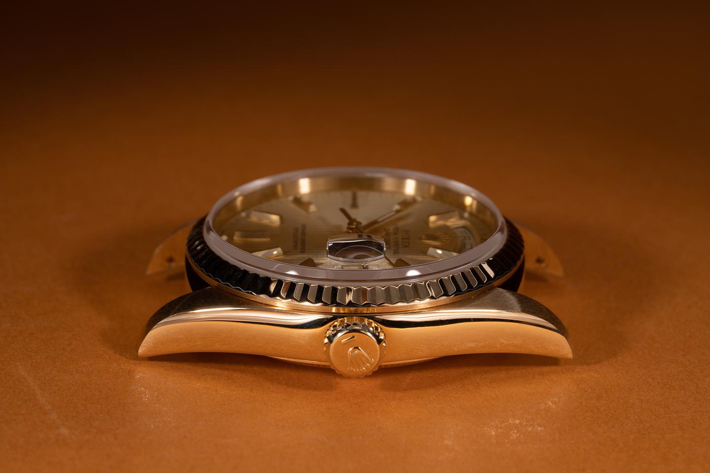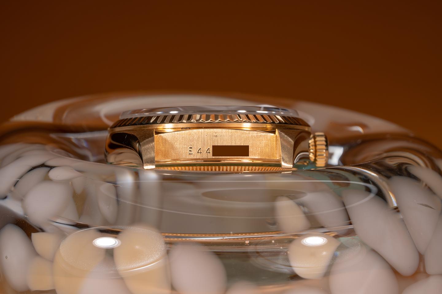 Case: The thick and even 18k yellow gold case is excellent and has just returned from polishing. The 18k yellow gold bezel is also in excellent condition.