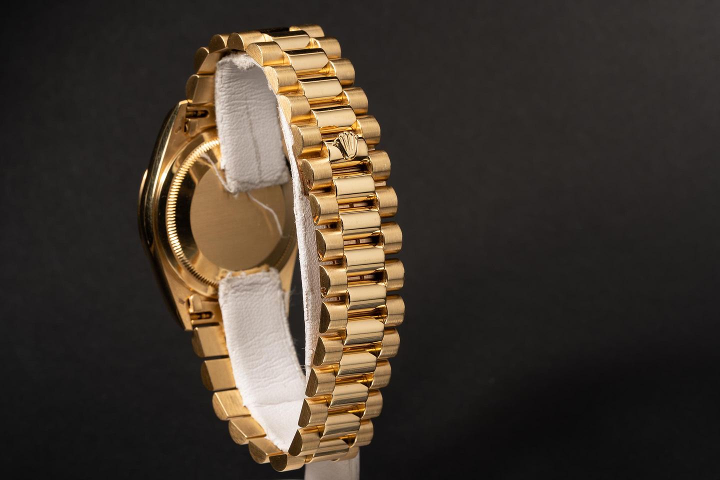 Bracelet: The 23 link 18k yellow gold president bracelet is excellent showing some light stretch for its age.