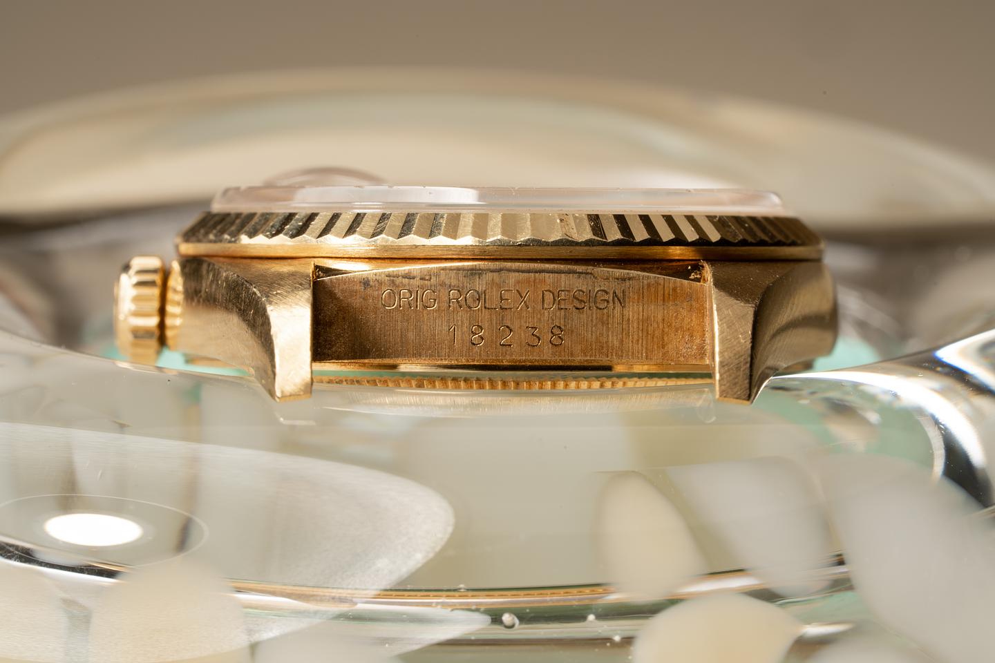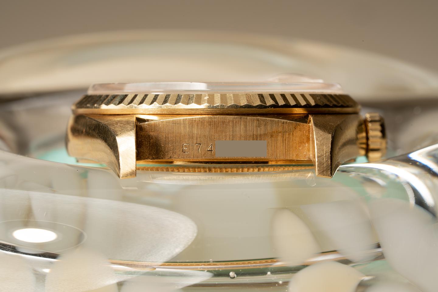 Case: The thick and even 18k yellow gold case is excellent and shows some wear from use. The 18k yellow gold fluted bezel is sharp and shows very light wear.