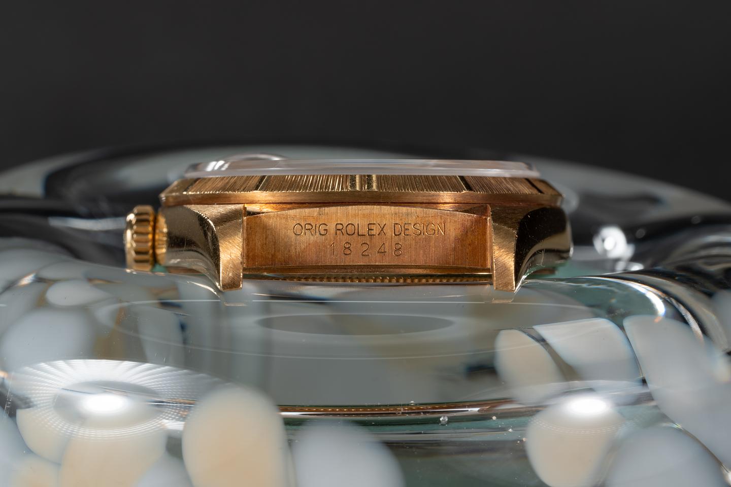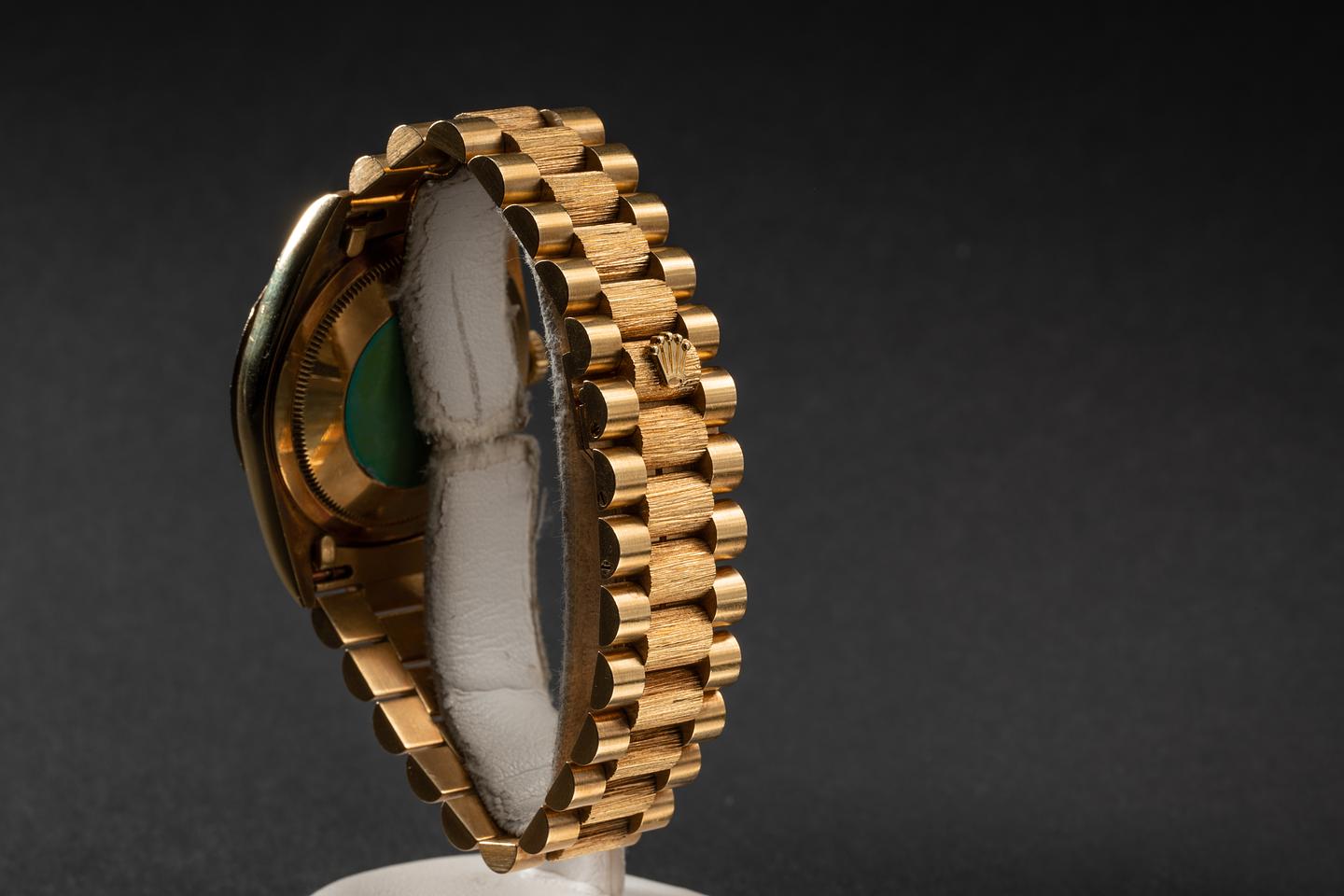 Notes: Though he most likely wears and 1807. This all gold bark finished 18248 Day-Date is the perfect descendent of Shotgun Willies very own "Texas Timex".