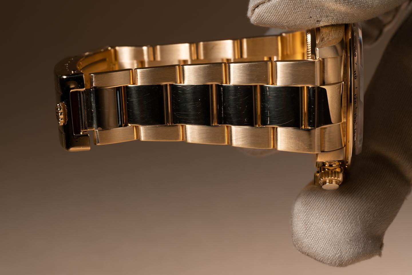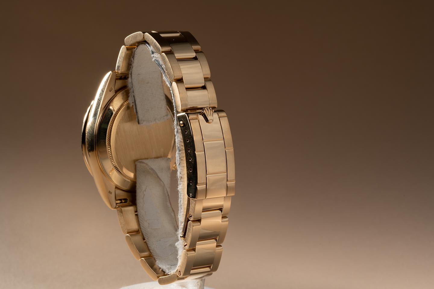 Bracelet: The 12 link 18K yellow gold Oyster bracelet is excellent showing no perceivable stretch. The clasp is stamped with a matching 1990 date code.