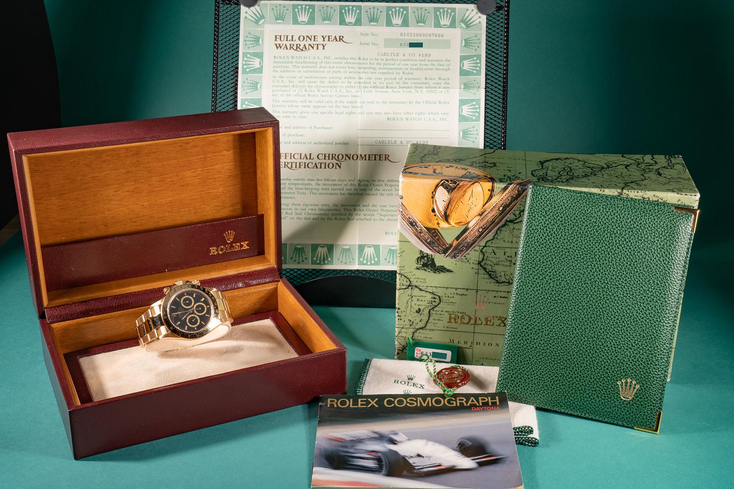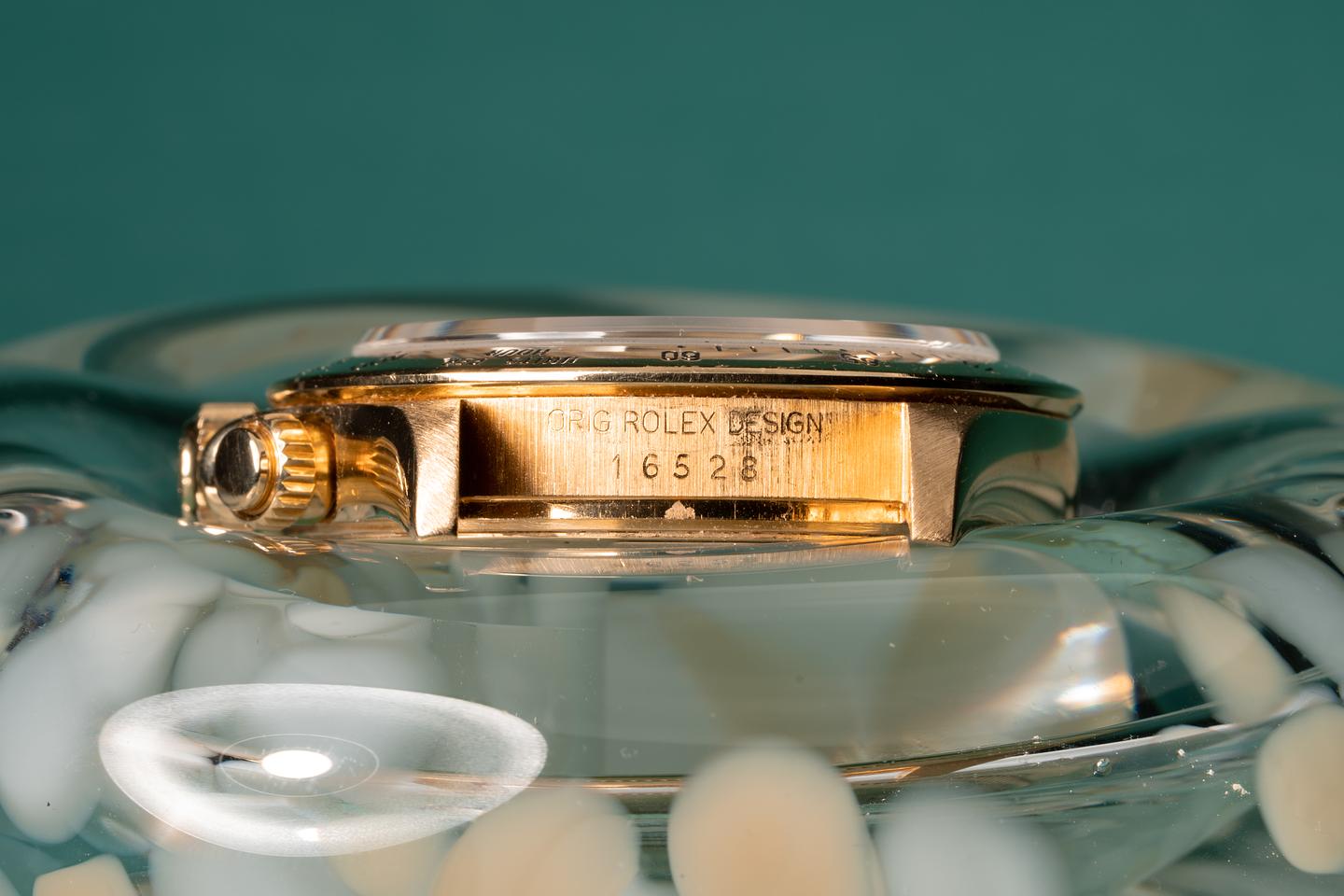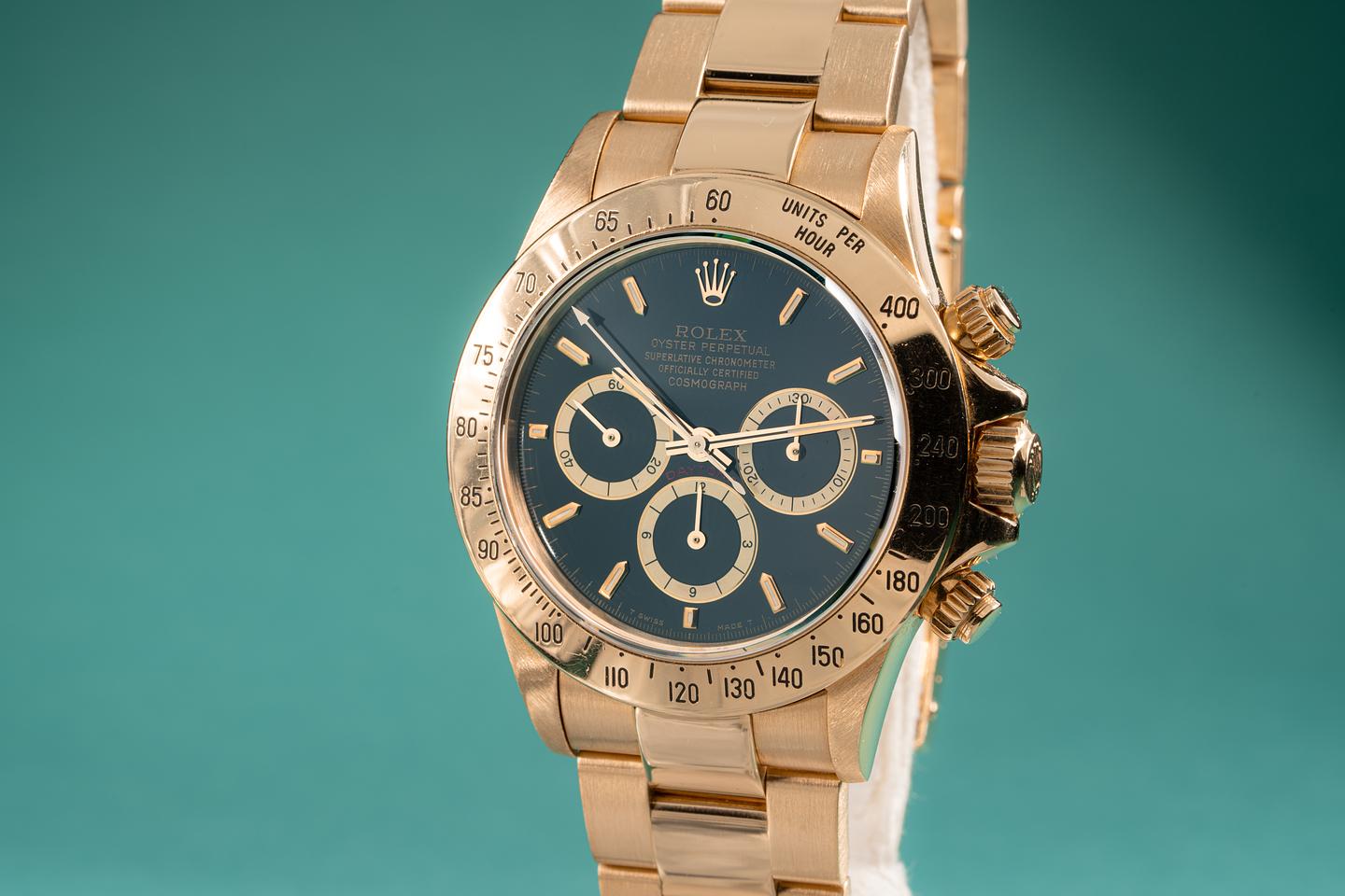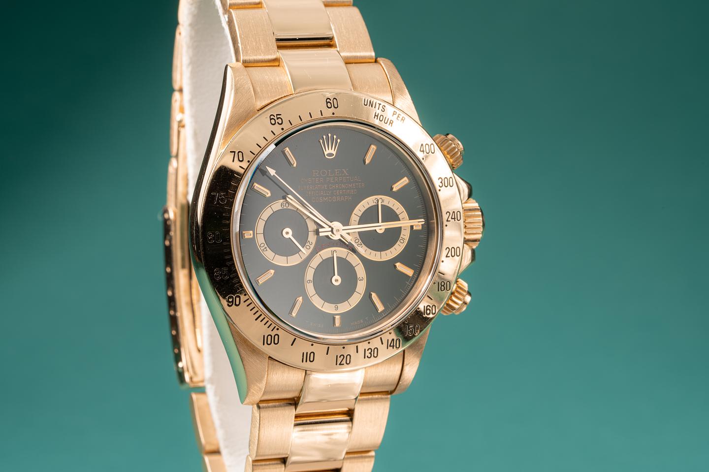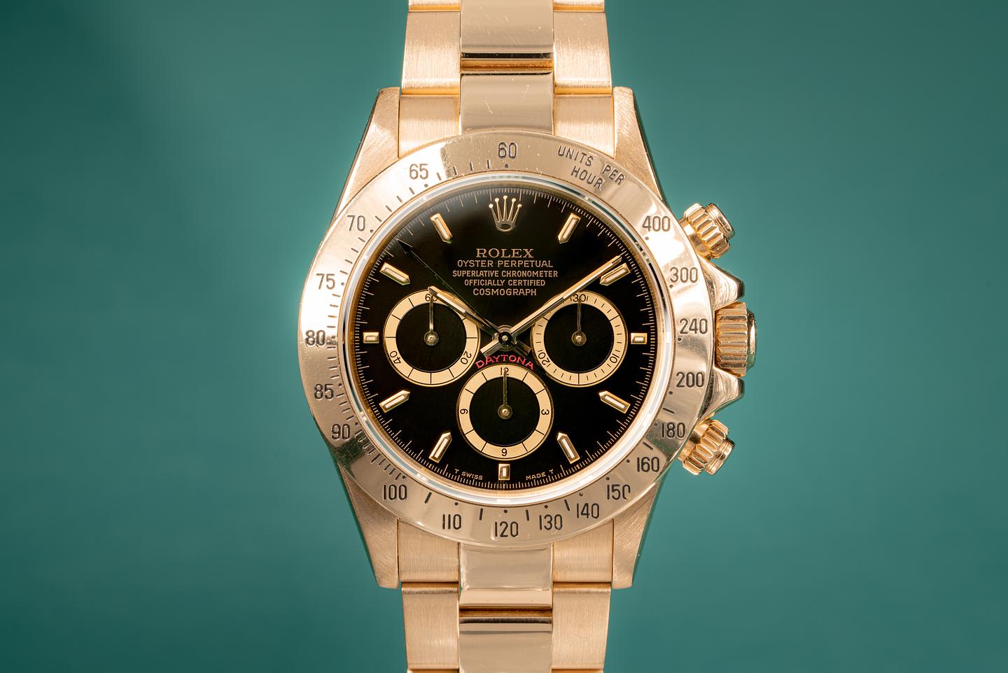 Notes: The iconic racing watch in an 18k yellow gold case.