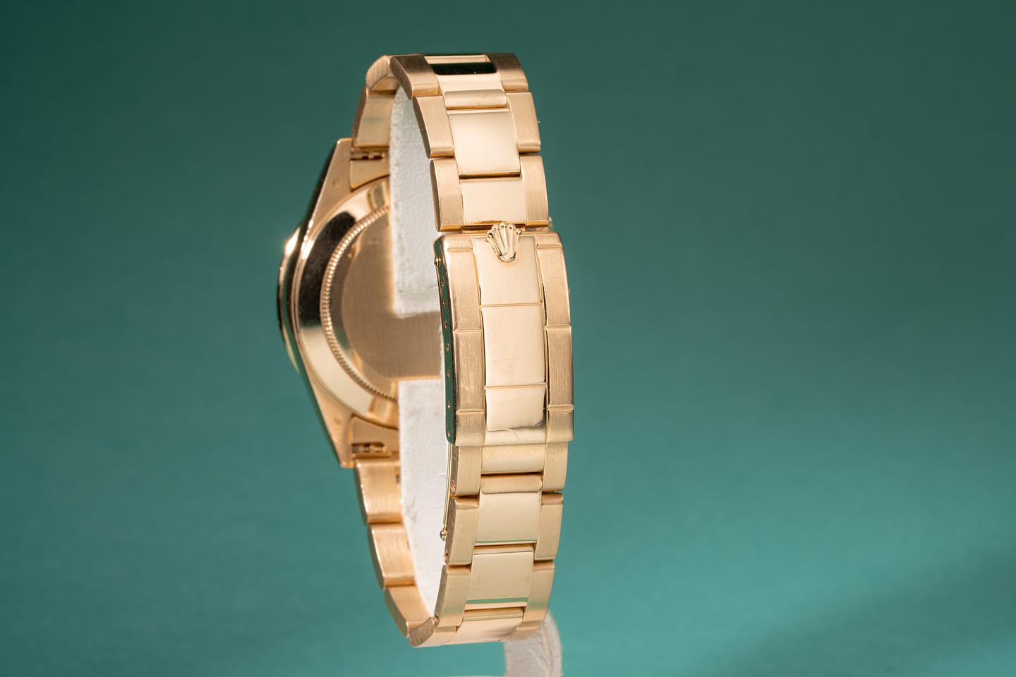 Bracelet: The 12 link 18k yg oyster bracelet is excellent showing very light stretch for its age.