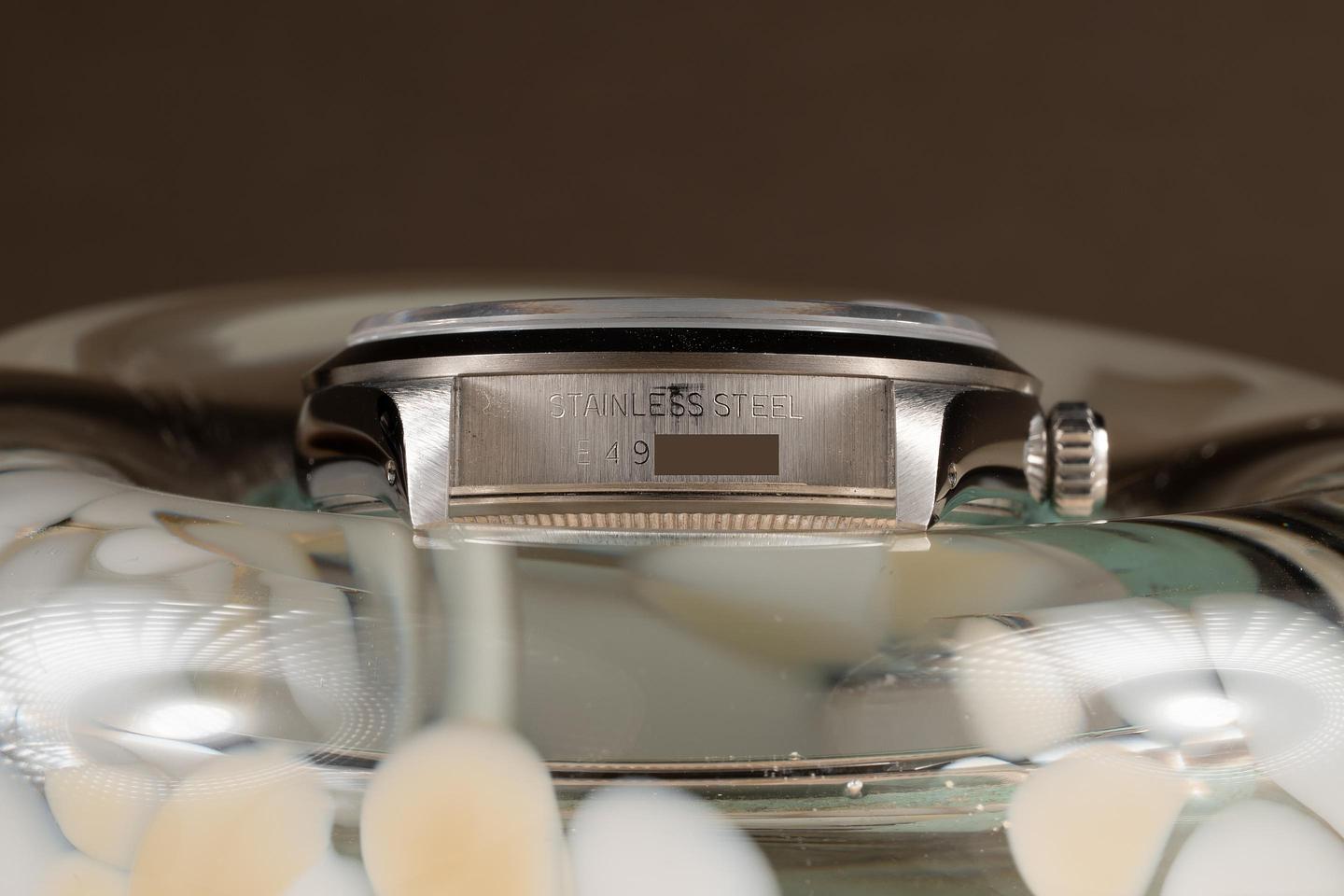 Case: The sharp 34mm case is excellent, showing only light wear from use. The smooth stainless bezel is also in excellent condition, showing only light wear from use.