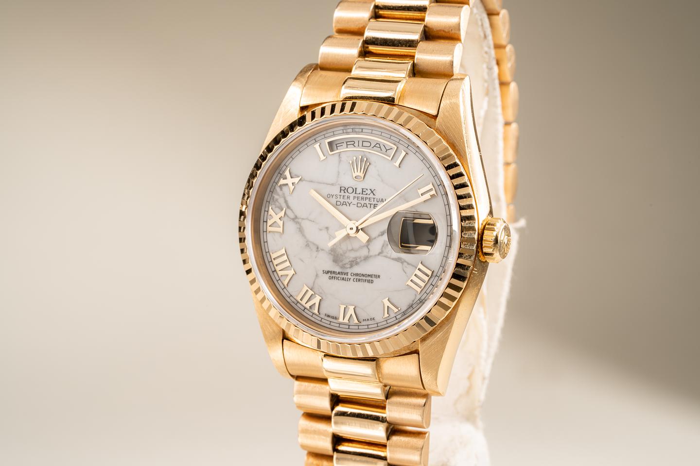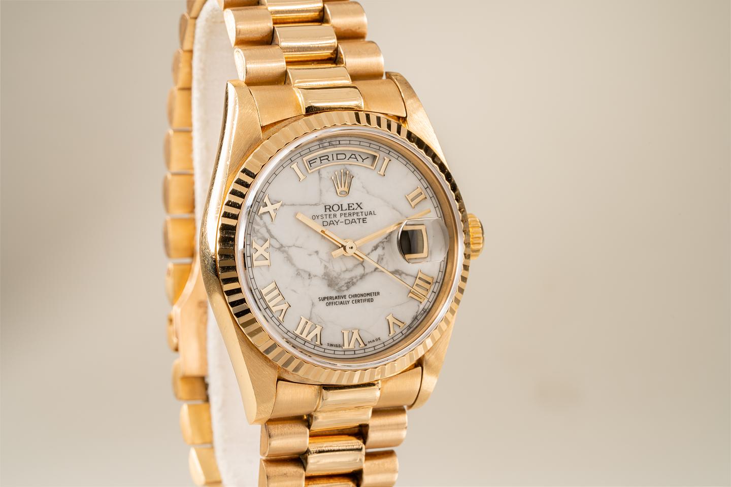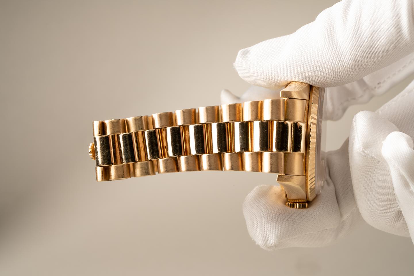 Bracelet: The 21 link 18k yg president bracelet is excellent and has only light stretch for its age.