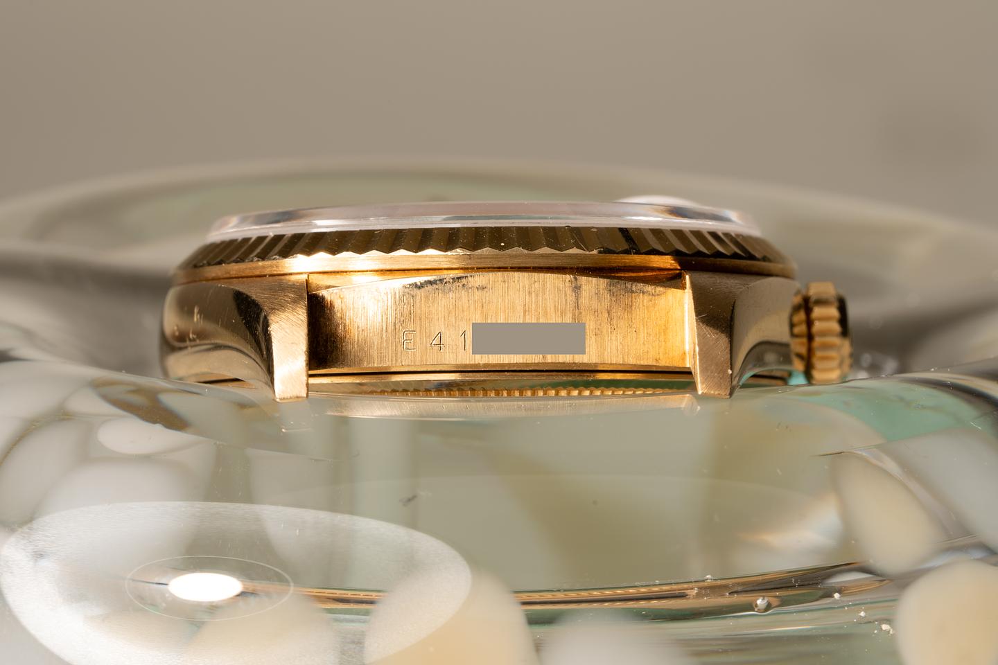 Case: Excellent 18k YG case that shows light wear from use. The 18k yg fluted bezel is sharp and shows very light wear.