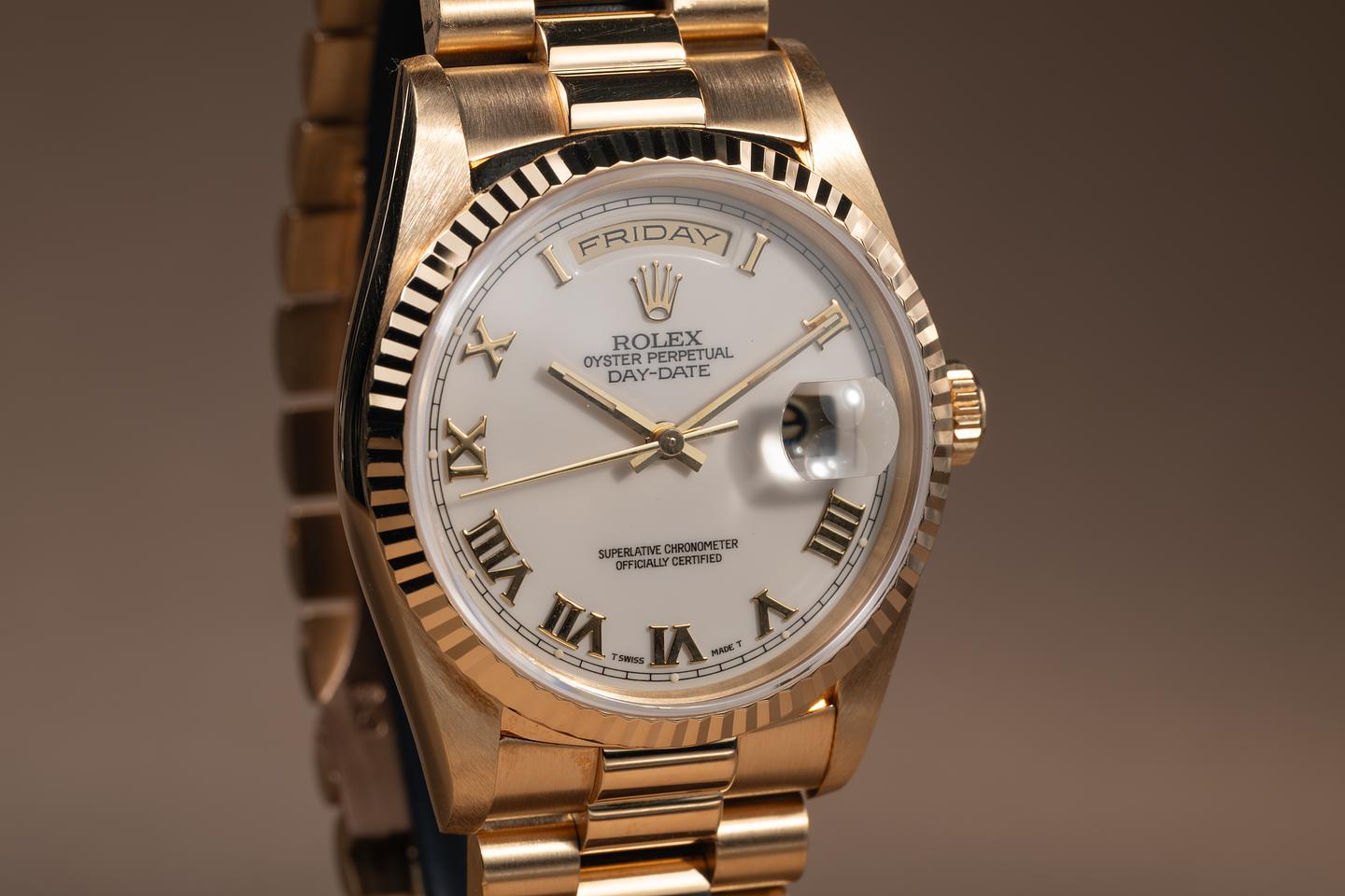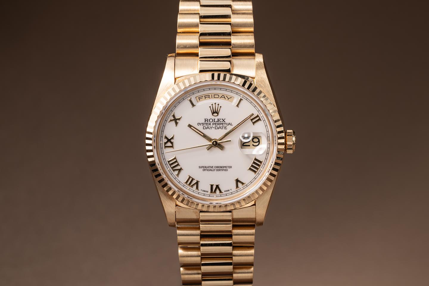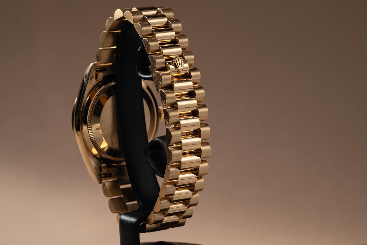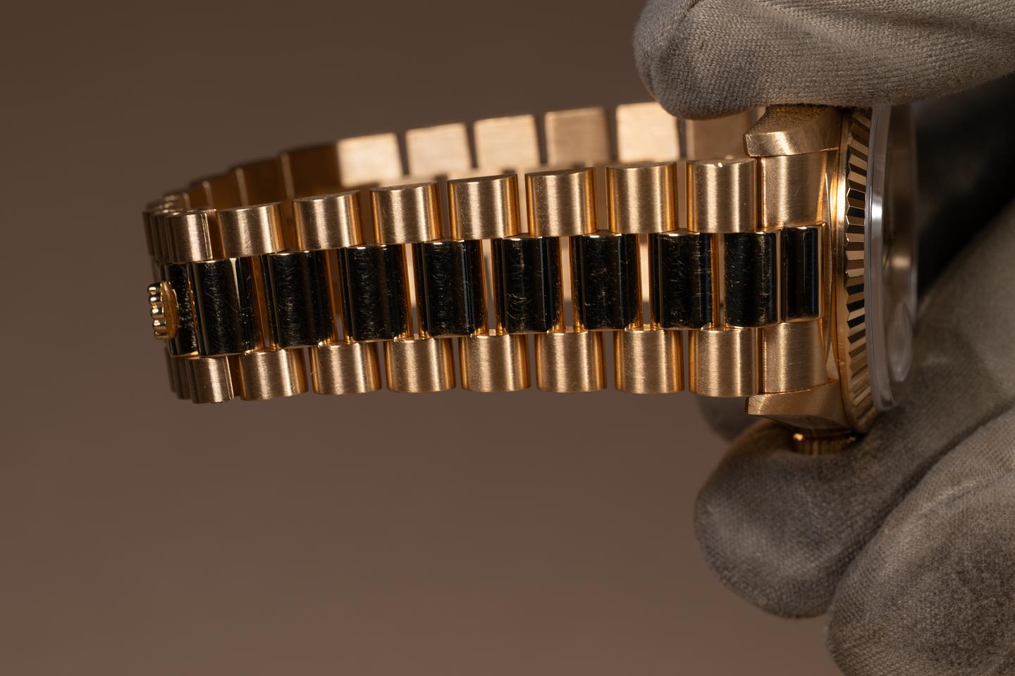 Bracelet: The 22-link 18K yellow gold President bracelet is excellent, showing only very light stretch for its age.
