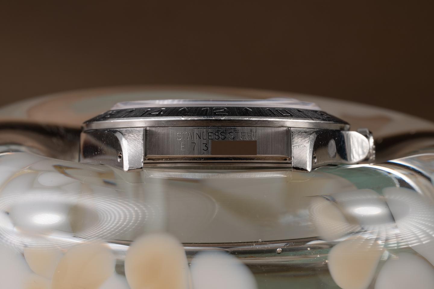 Case: The case is excellent, showing wide, prominent factory bevels and average wear from use. The stainless bezel insert is also in excellent condition, showing some light wear from use.