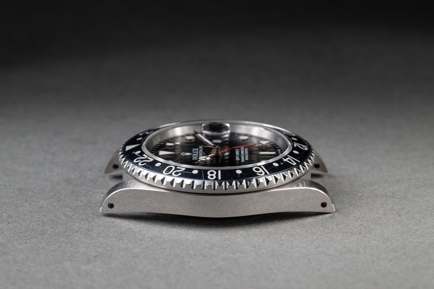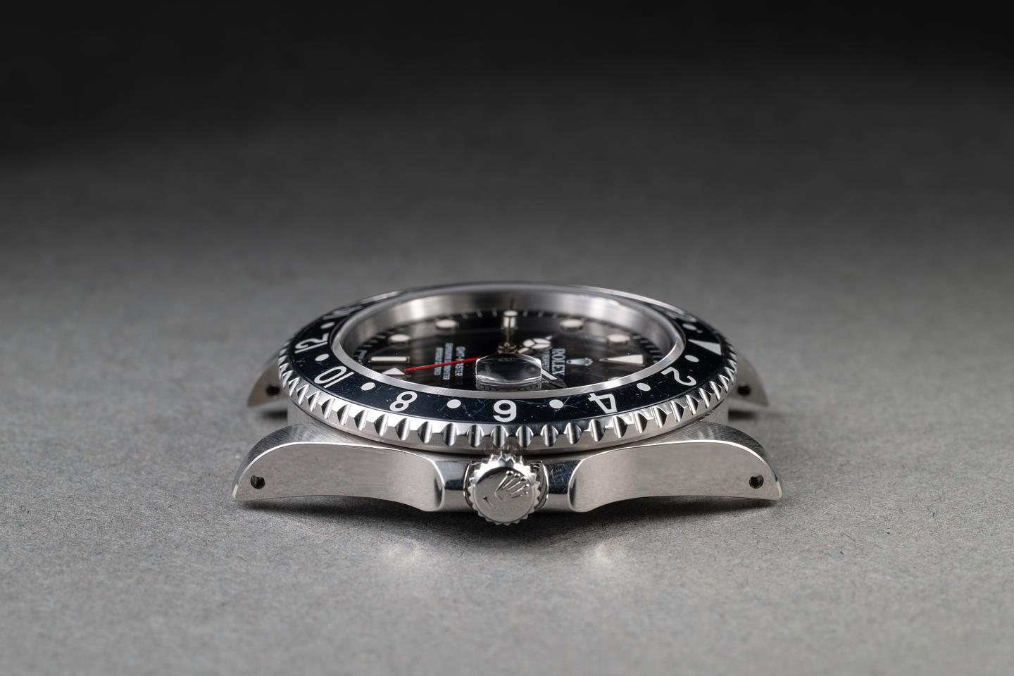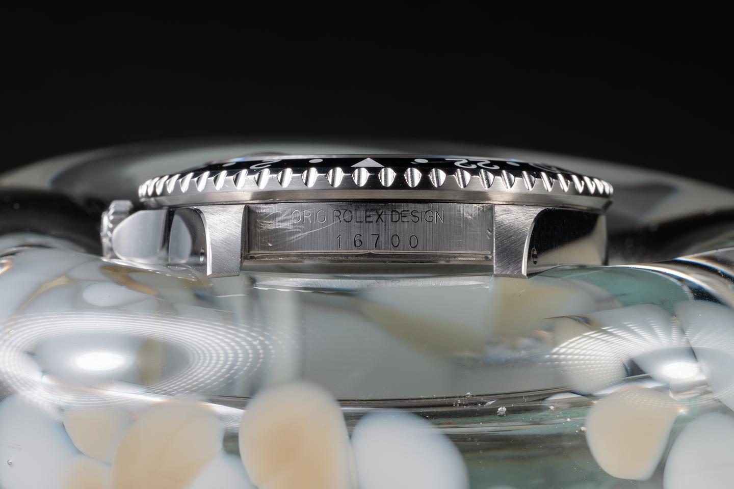 Case: The recently polished case is excellent, showing sharp, prominent bevels and only very light wear. The bezel insert is also in excellent condition and has faded to a navy blue hue, showing only very light wear from use.