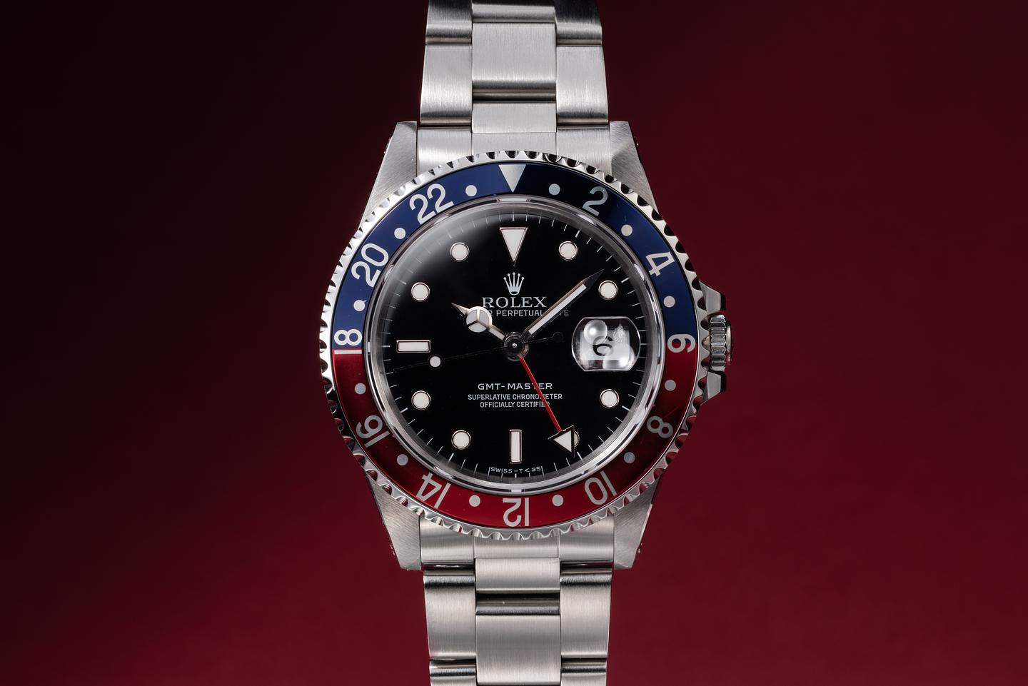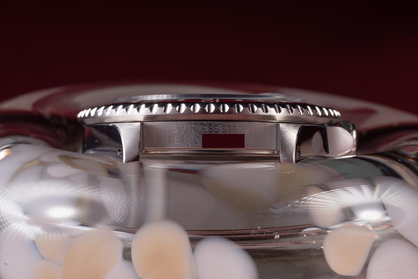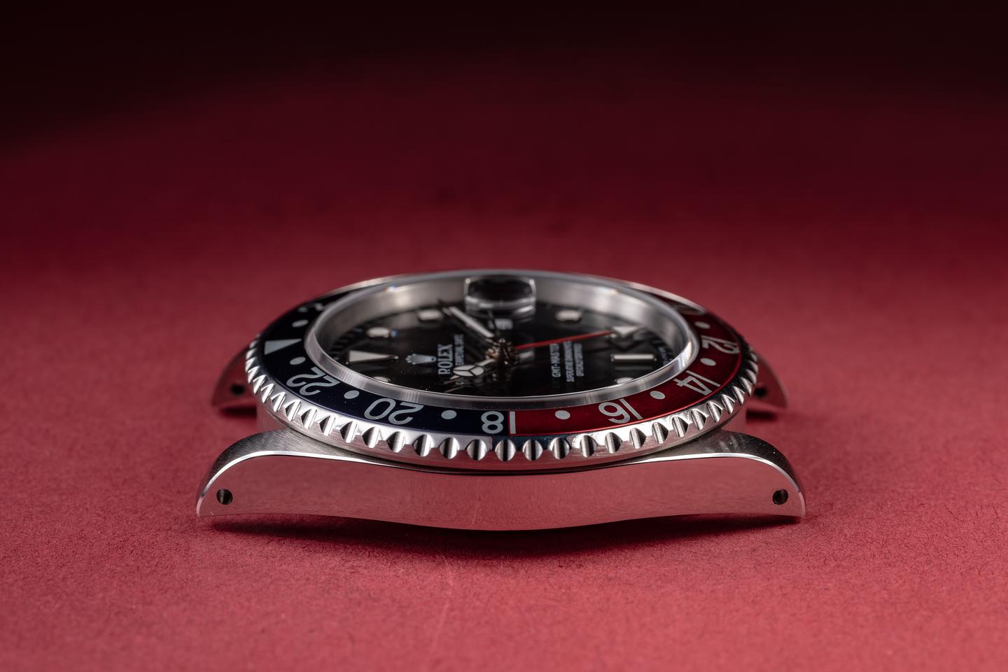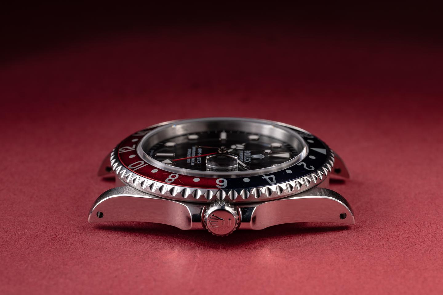 Case: The recently polished case is excellent, showing sharp, prominent bevels and only light wear from use. The blue and red "Pepsi" bezel insert is also in excellent condition, showing only light wear from use.