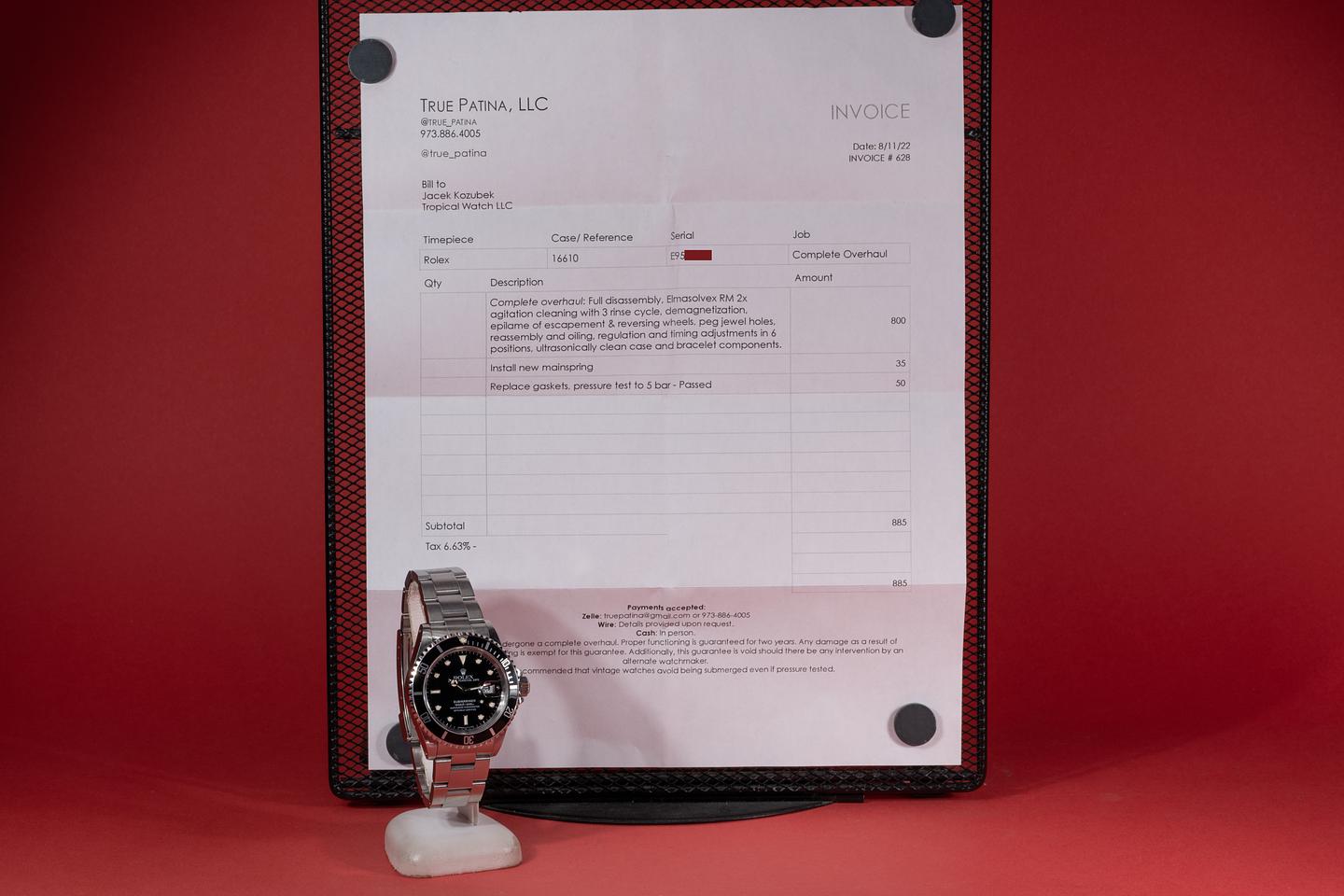 Case: The previously polished case is excellent showing some light wear from use. The black bezel insert is also in excellent condition showing only light wear from use.