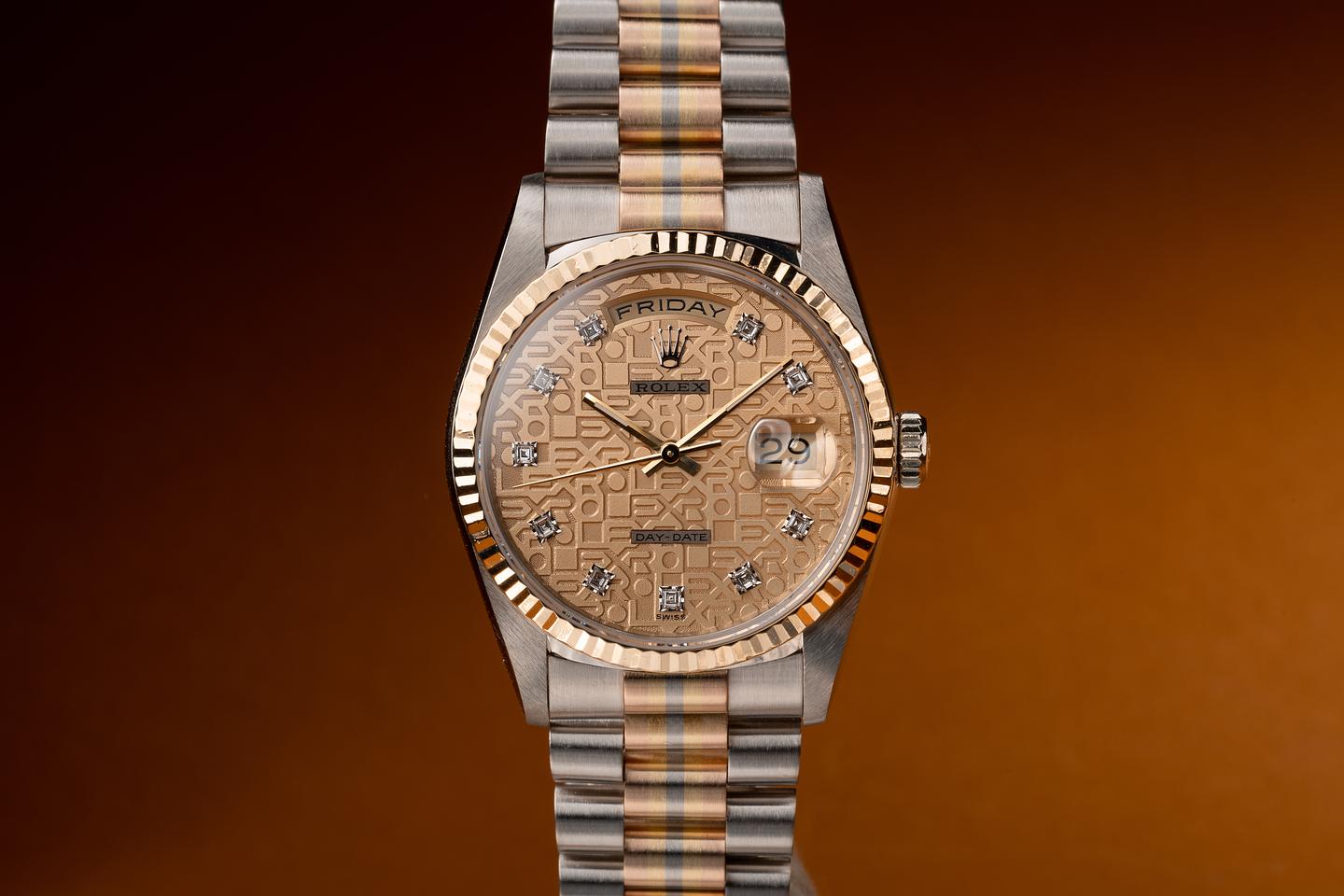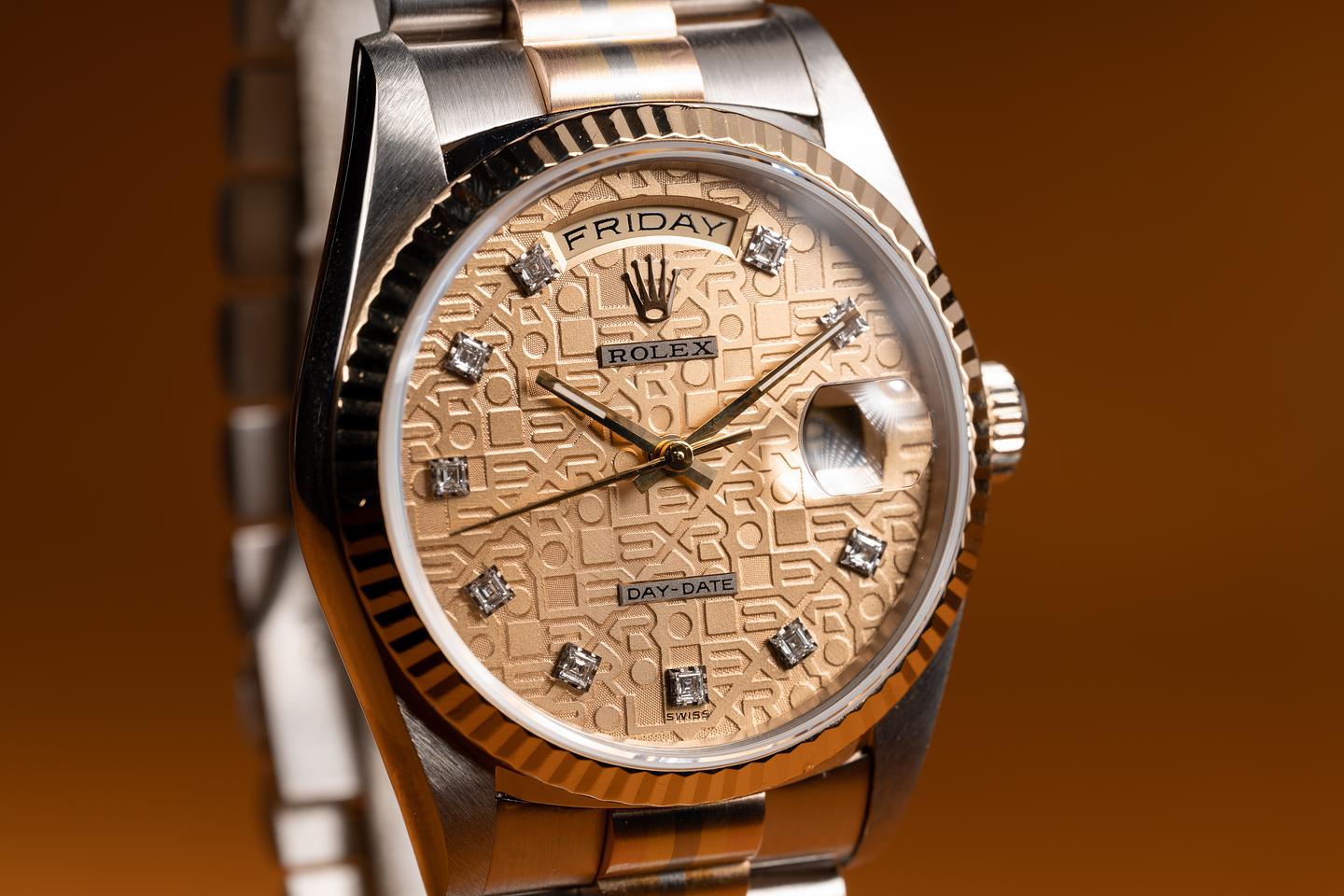 Dial: The champagne jubilee no lume diamond dial is excellent showing no visible wear. The tritium hands are also in excellent condition and have aged to a clean creamy hue.