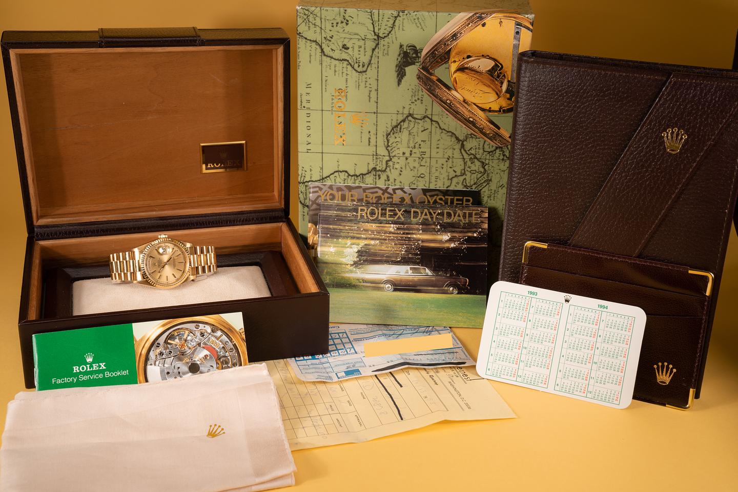 Accessories: Box, purchase papers, and original Rolex accessories.