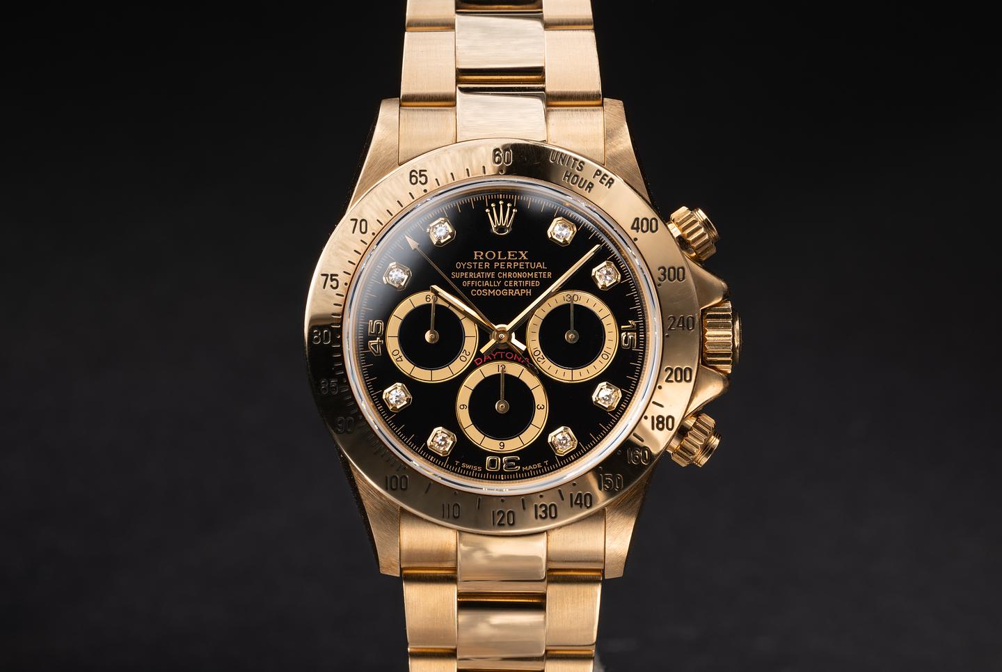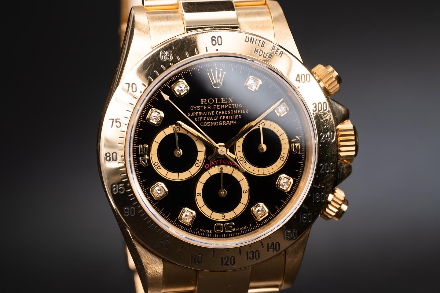 Dial: The glossy black inverted six diamond dial is excellent showing no visible wear.