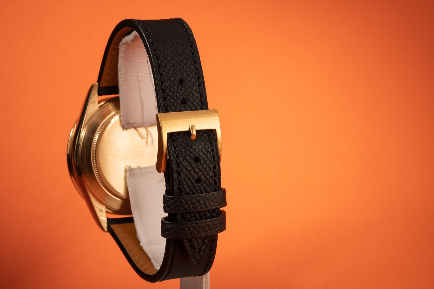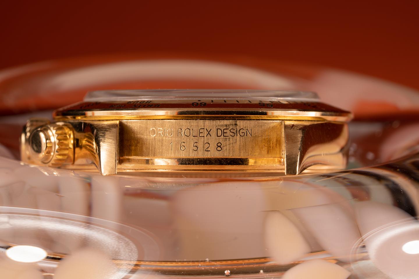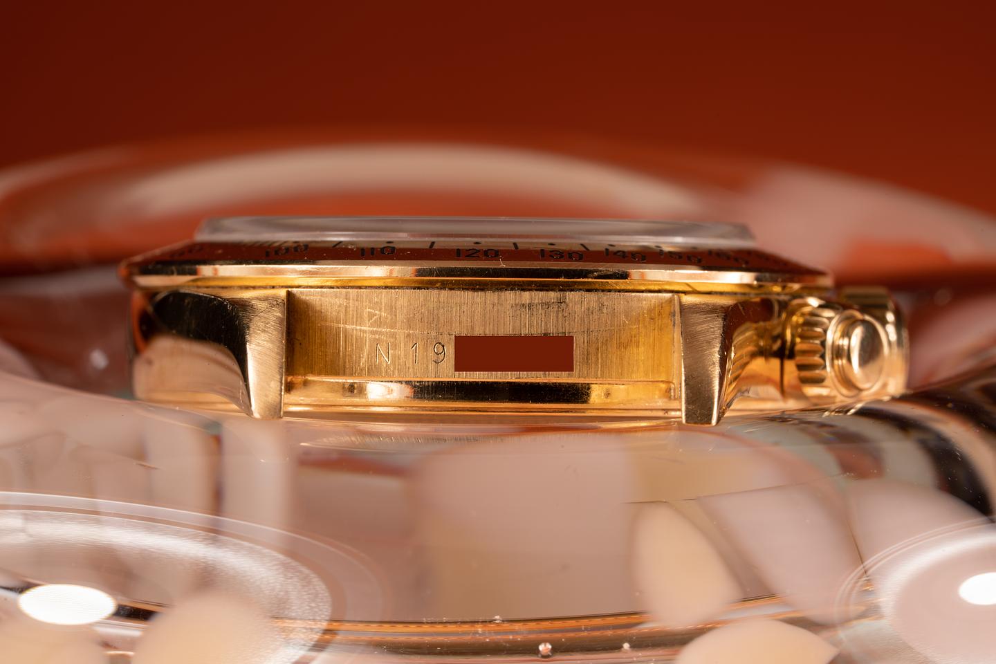 Case: The previously polished 18k yellow gold case is excellent and shows light wear from use. The 18k yellow gold bezel is also in excellent condition and shows light wear from use.