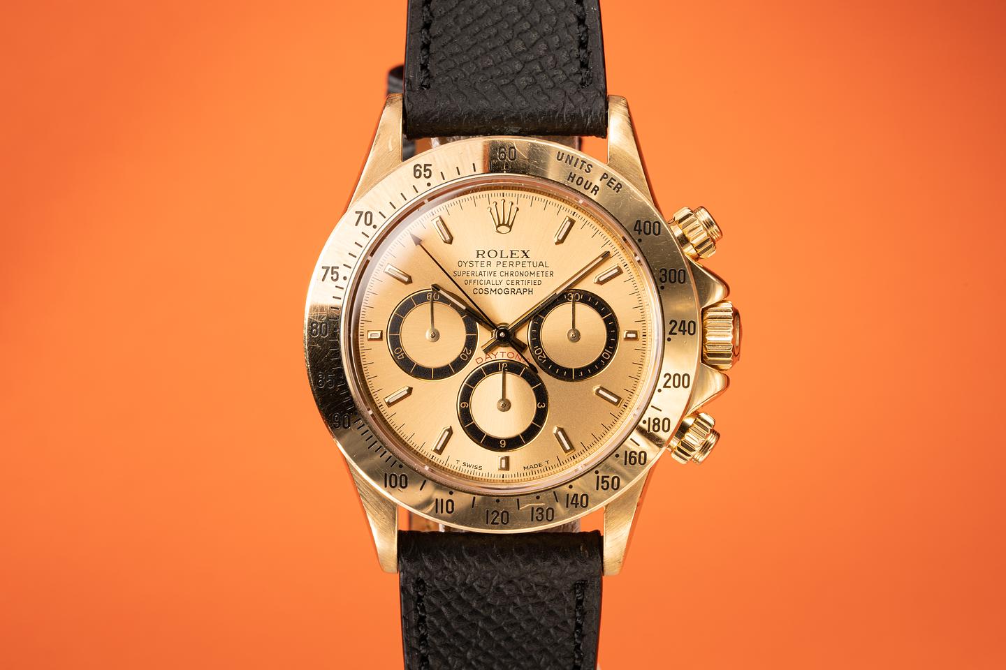 Notes: A fantastic early 90's gold Zenith Daytona with an ultra clean inverted 6 dial.