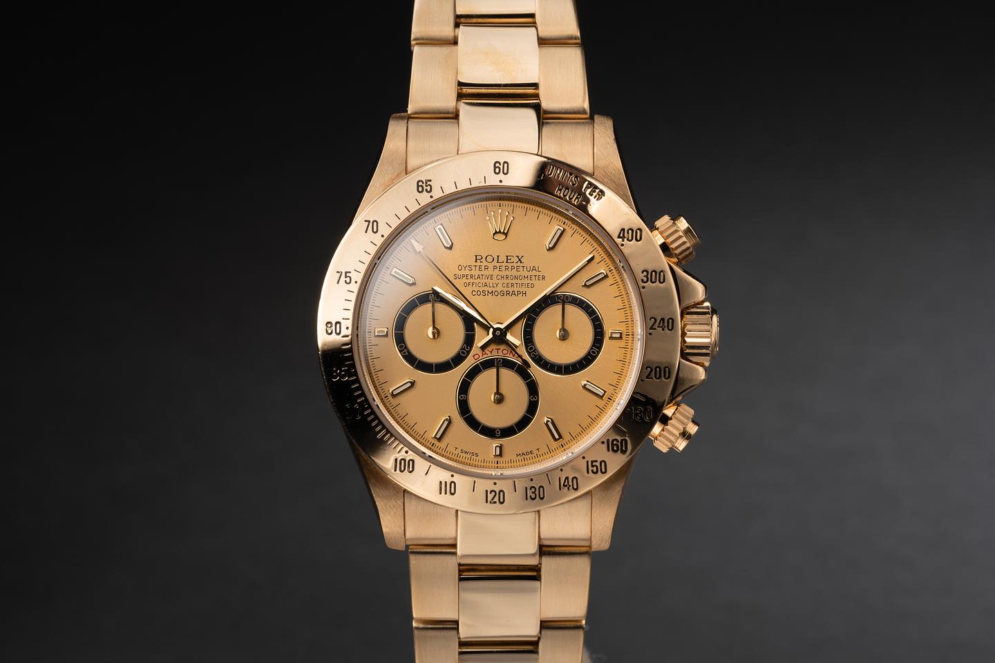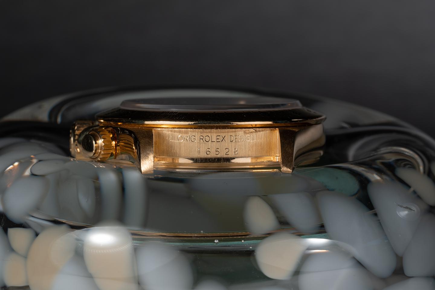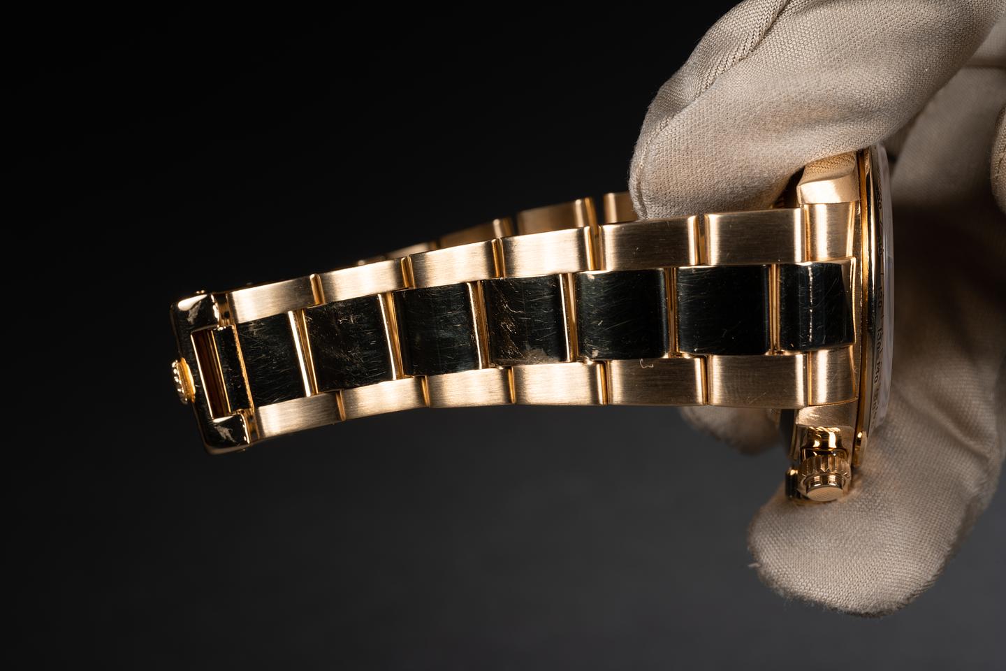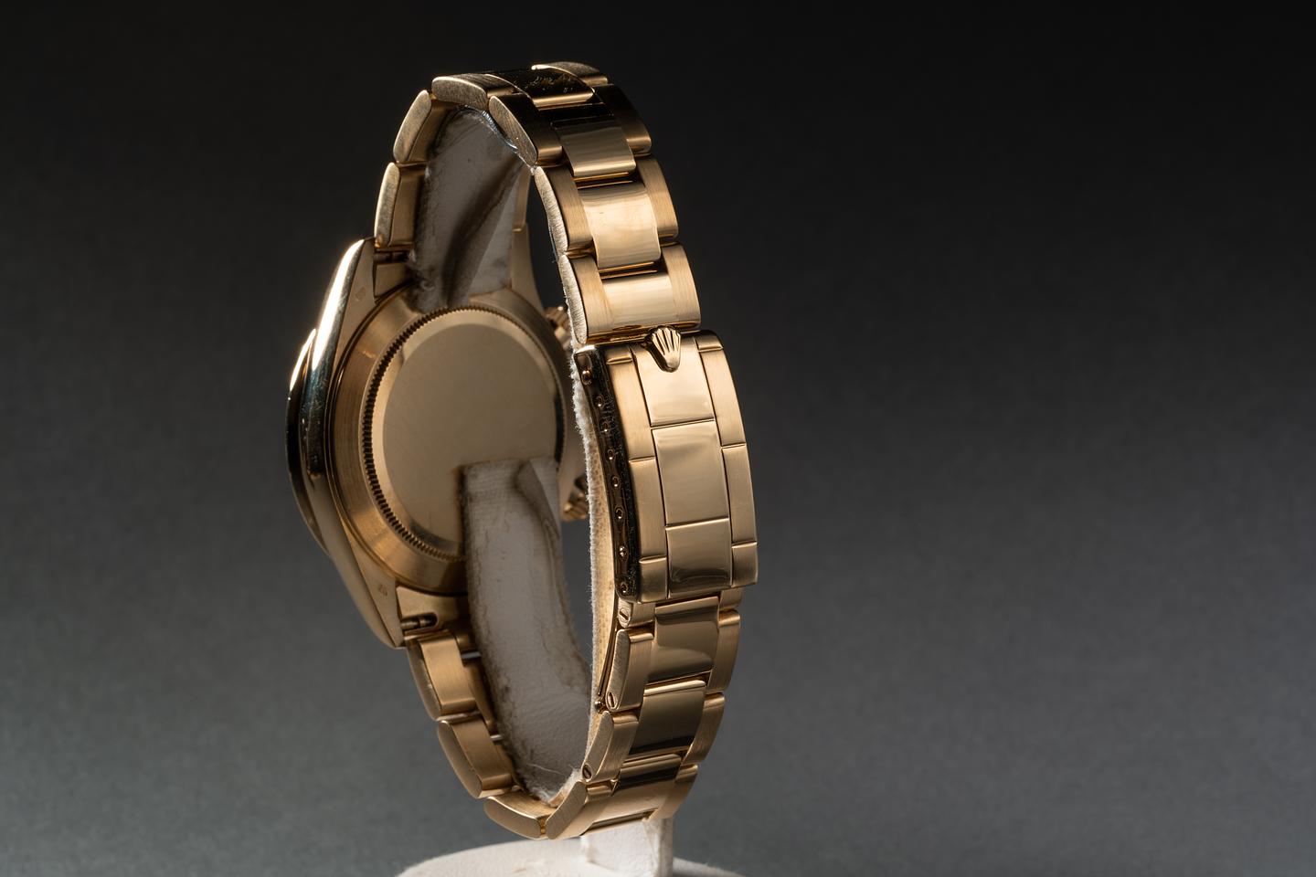 Bracelet: The 13 link 18K yellow gold Oyster bracelet is very good showing average stretch for its age. The clasp is stamped with a 1993 date code.