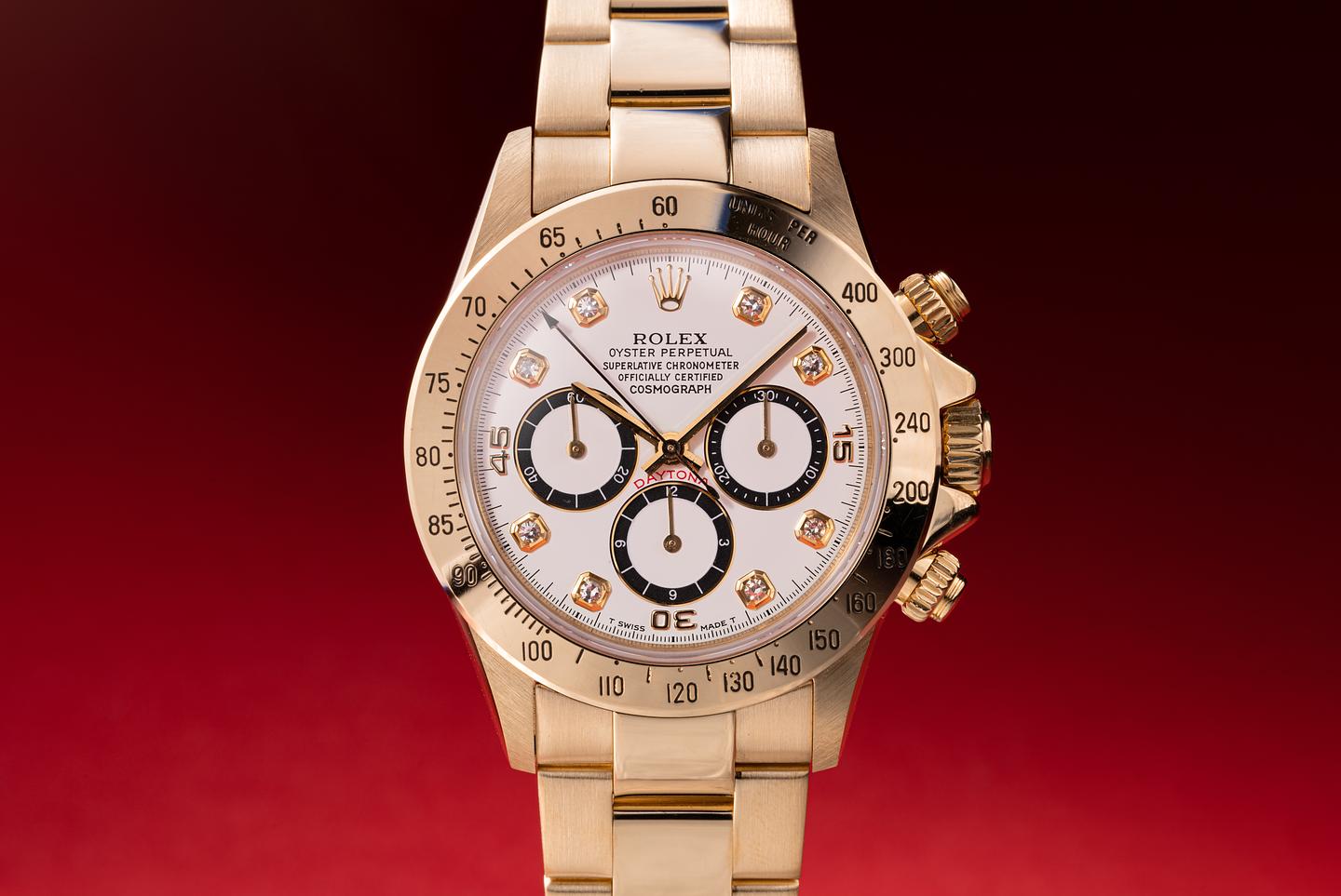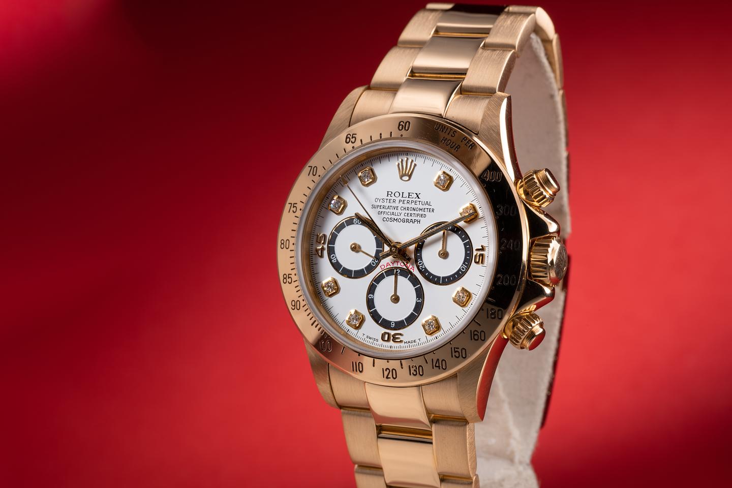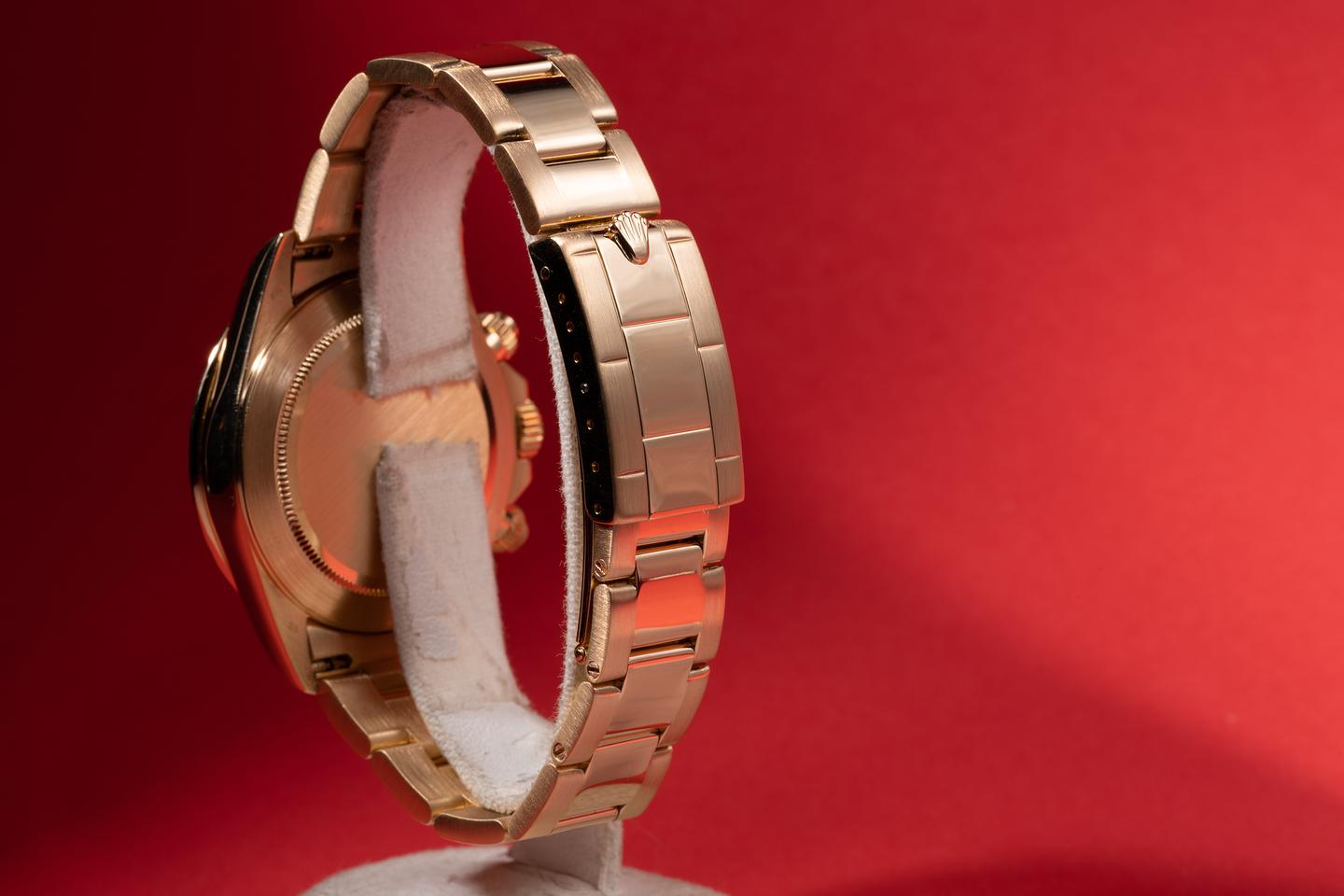 Case: The thick sharp and even case is excellent showing only very light wear from use. The 18k yellow gold bezel is also in excellent condition showing only very light wear from use.